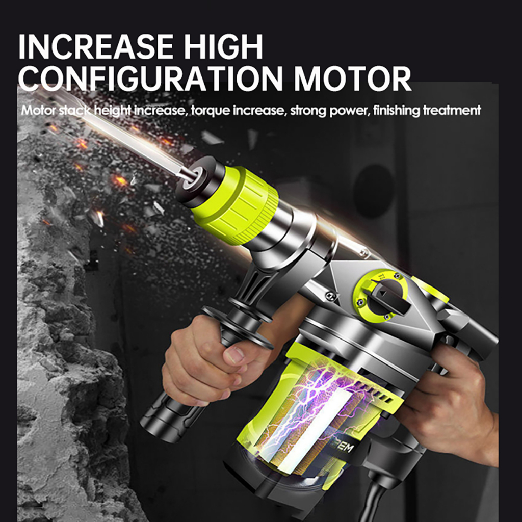 Heavy Rotary Impact Hammer Electric Hammer Drill Screwdriver Concrete Breaker 220V With Portable Tool Hammer Drill Hacking Drill Concrete Breaker Electric Hammer 6500W