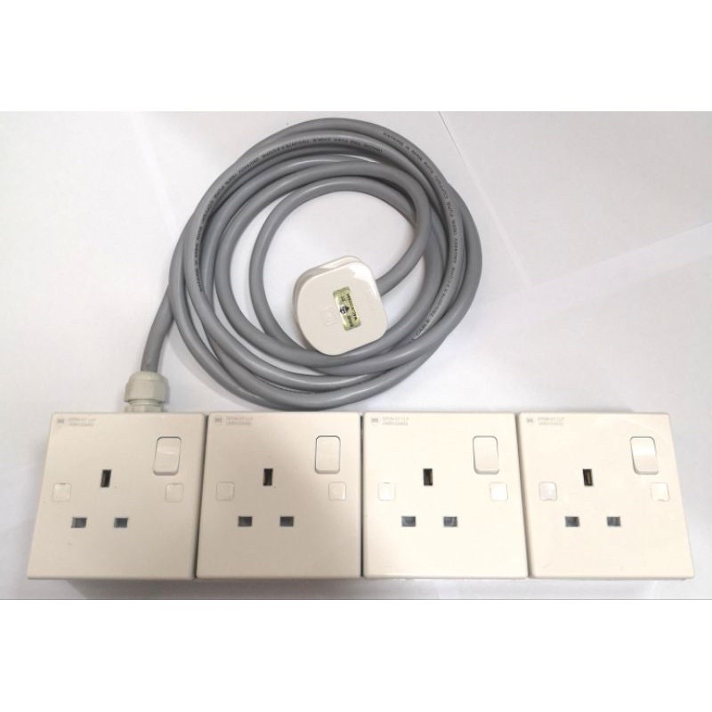 Heavy Duty Extension Wire Socket 4 way / 3 way / 2 way / 1 way c/w Full Copper Wire (1.5m-20m) 1/2/3/ 4 Gang Extension