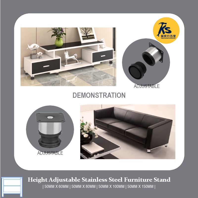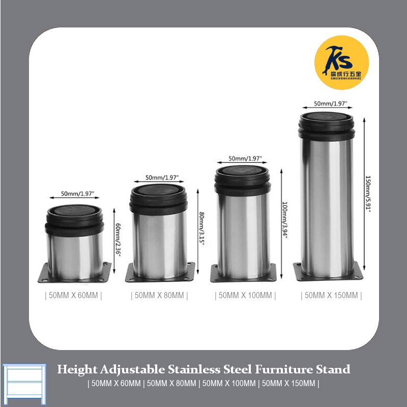 Height Adjustable Stainless Steel Furniture Stand ( 50MM X 60MM | 50MM X 80MM | 50MM X 100MM | 50MM X 150MM )