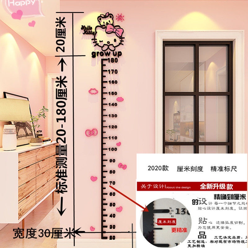 Height Measure Sticker 3D Doraemon Hello Kitty Mickey Cartoon Pattern Acrylic Height Measure Sticker for Kids Bedroom Wall Decor Wallpaper