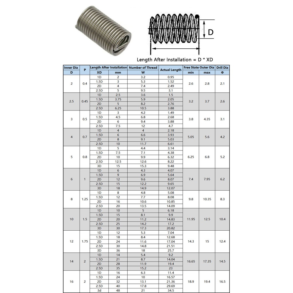 Helicoil A2 Stainless Thread Repair Coil Insert Tool M6 M8-M16