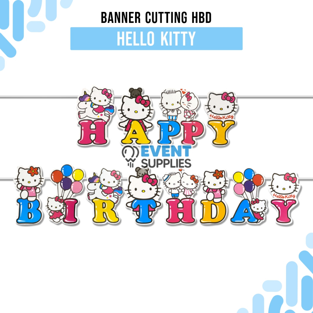 Character Banner HelloKitty cartoon Hello Kitty Happy BirthDay Bunting Flag Color Banner Set
