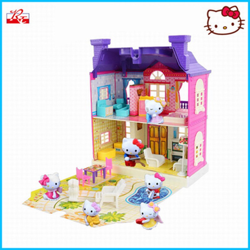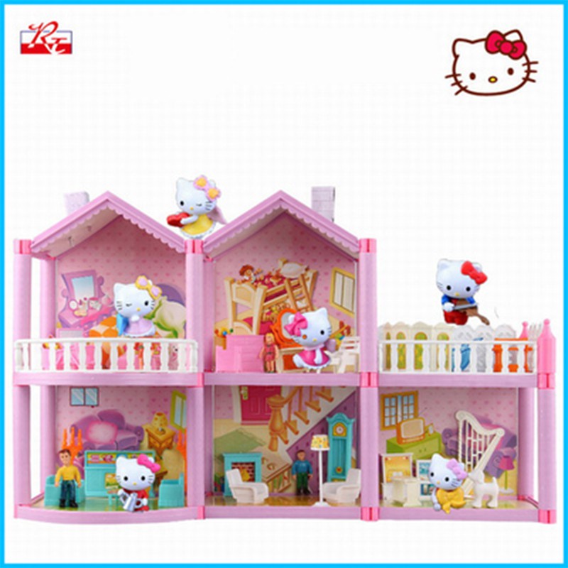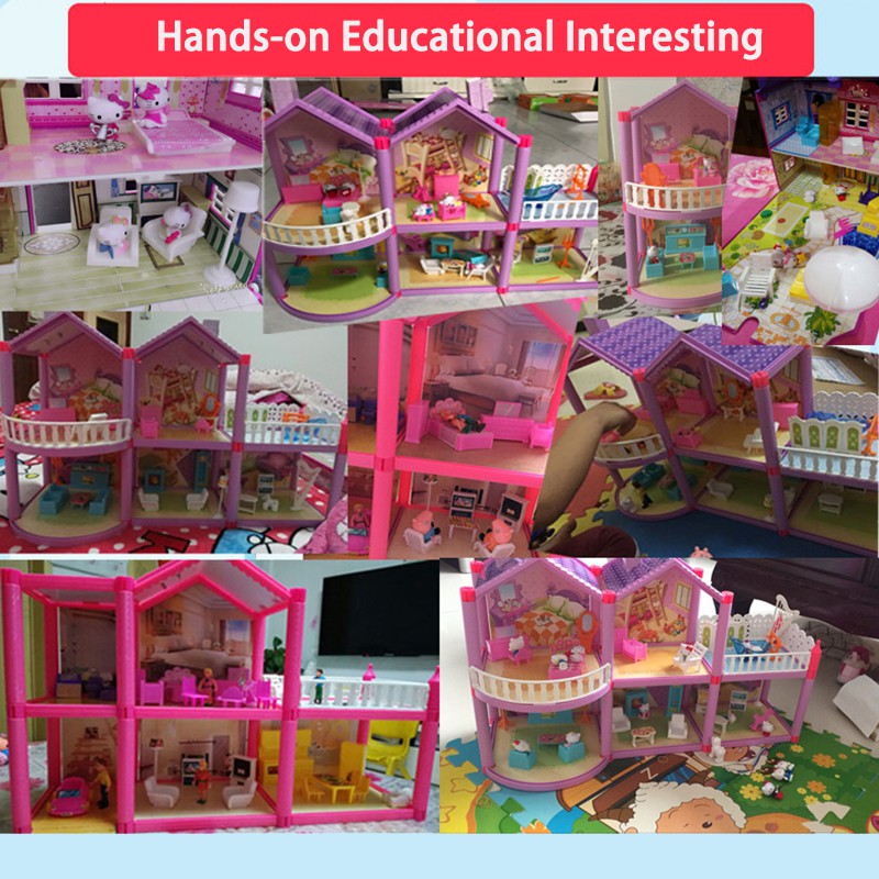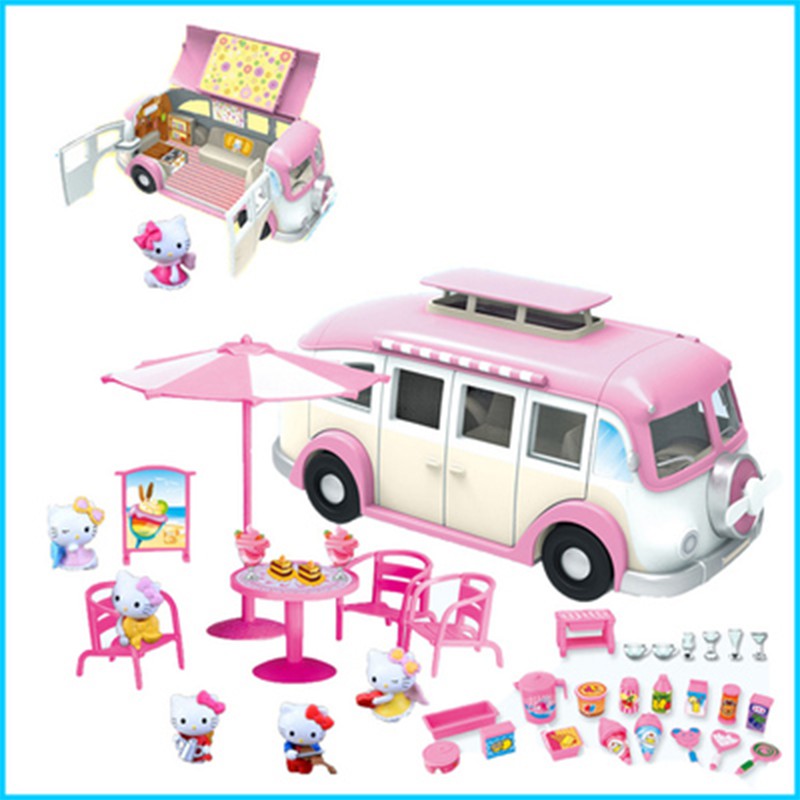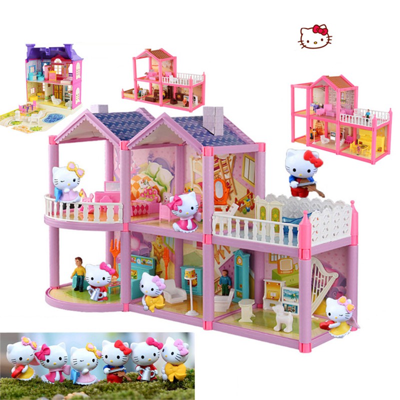 Hello Kitty DIY Luxury Assemble Toy Play House Castle Cottage Toy Set Model Villa House Dining Car Desk Toy Plane Picnic Children's Toy Games Boy Girls Play House