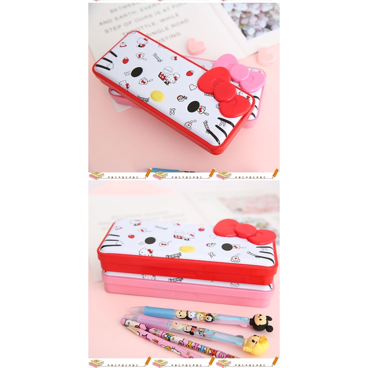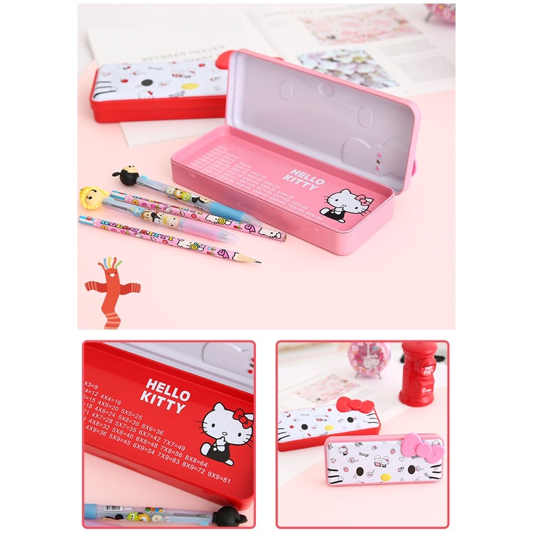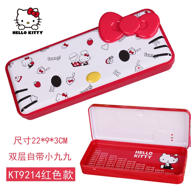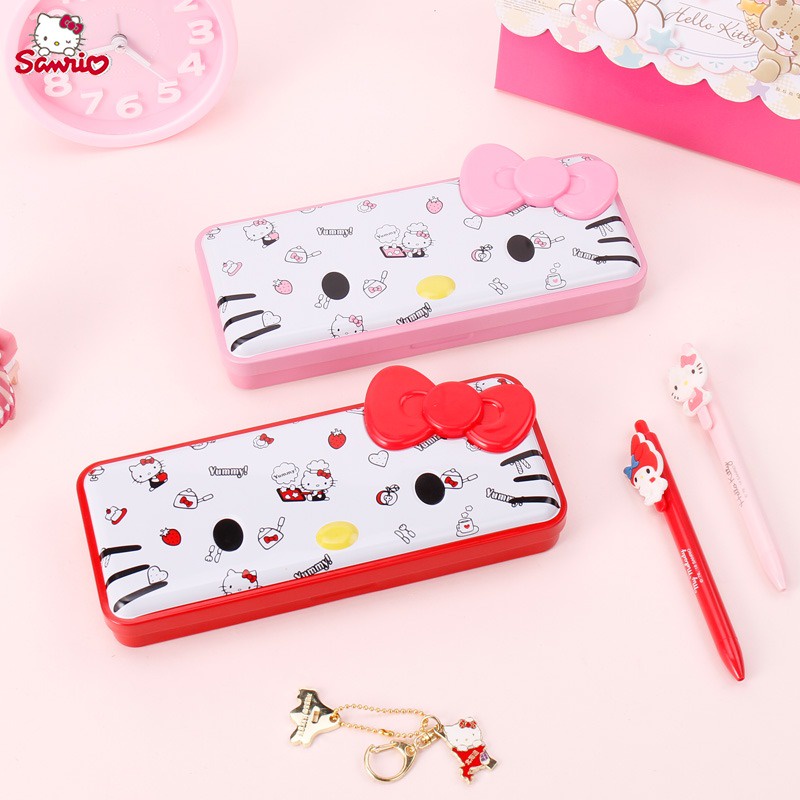 Hello Kitty Metal Pencil Box Stationery Box Elementary School Girl Iron Cartoon Kt Cat Pencil Children Day Gift