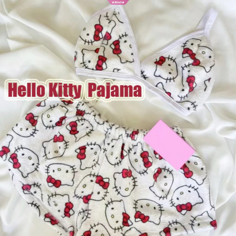 Hello Kitty Pajama Woman Two-piece Comics Pyjama Sanrio Loose Home Wear Pajamas Summer Women Bikini Ladies Shorts Kawaii Bra Set