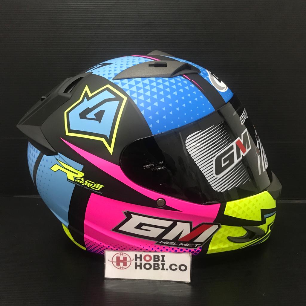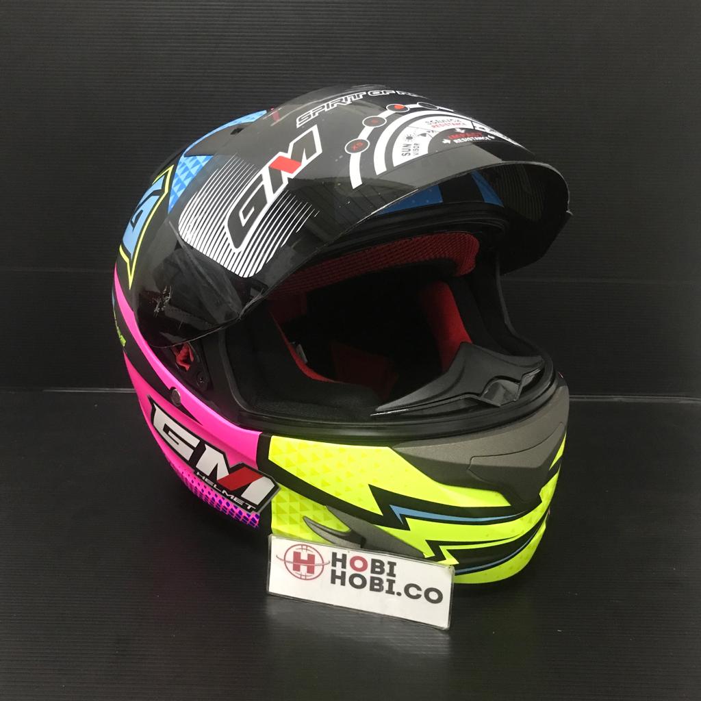 Full FACE GM RACE PRO HELMET FLASH MOTIF BLACK PINK DOFF VISOR SINGLE DARK SMOKE