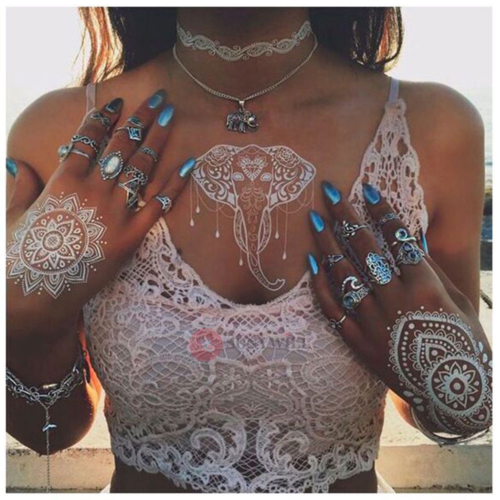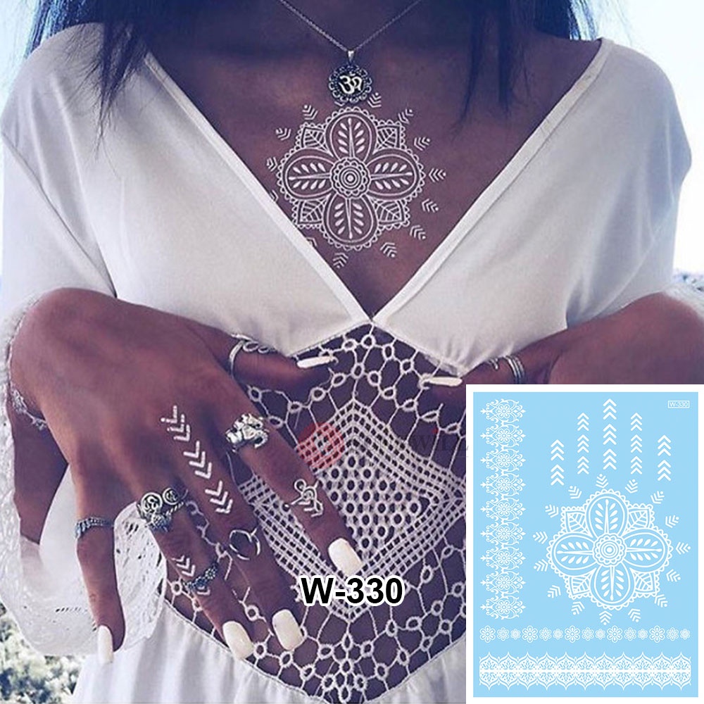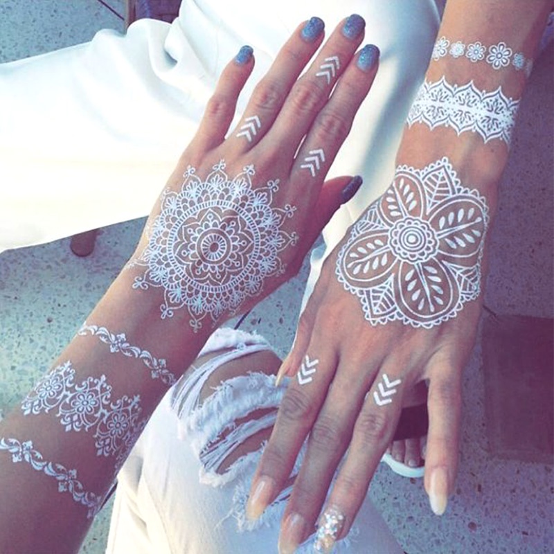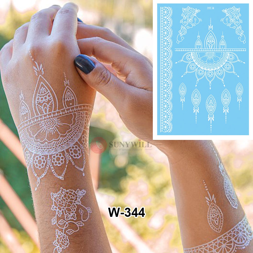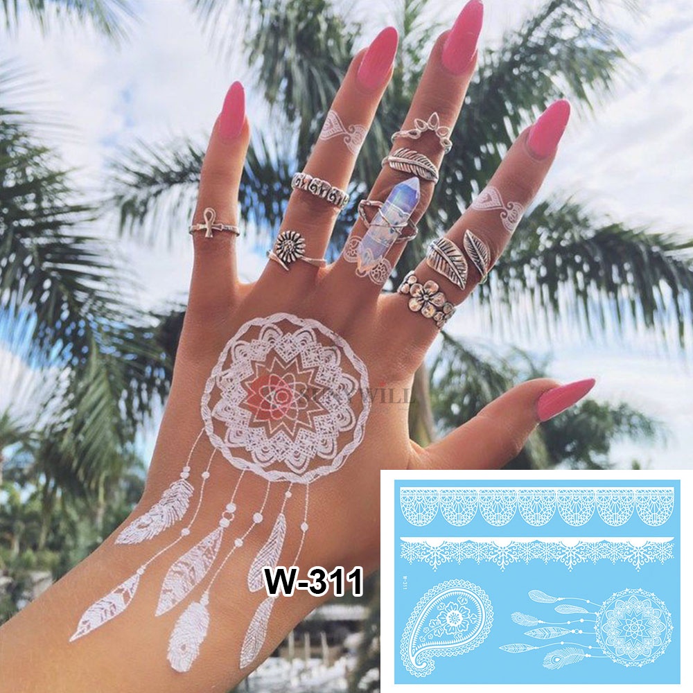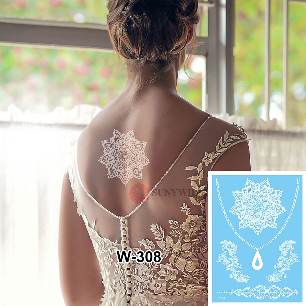 Henna Mudah White Lace Sticker Inai Putih Waterproof Temperory Wedding Party Flower Tattoo Sticker