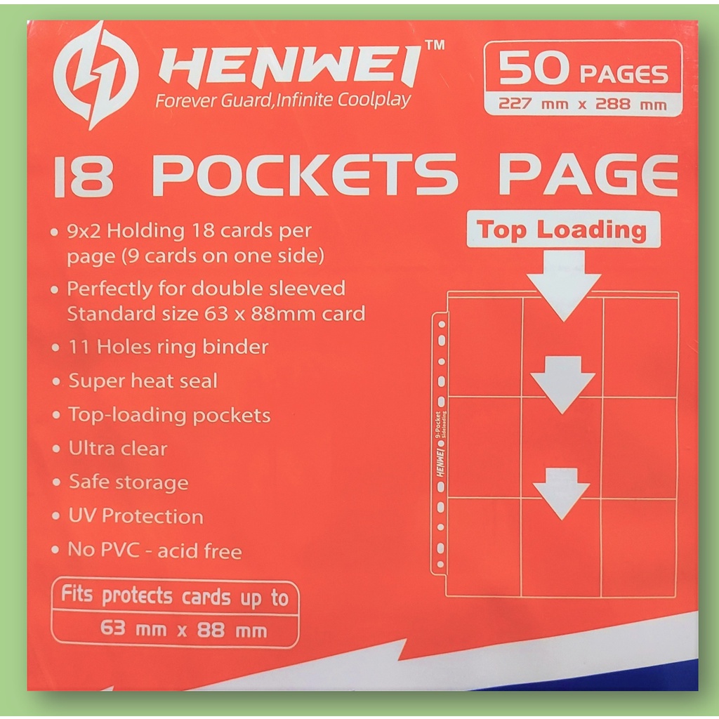 Henwei 18 Pocket Color Page Standard Size Card 11-holes double-sided Binder Pages/Sleeves