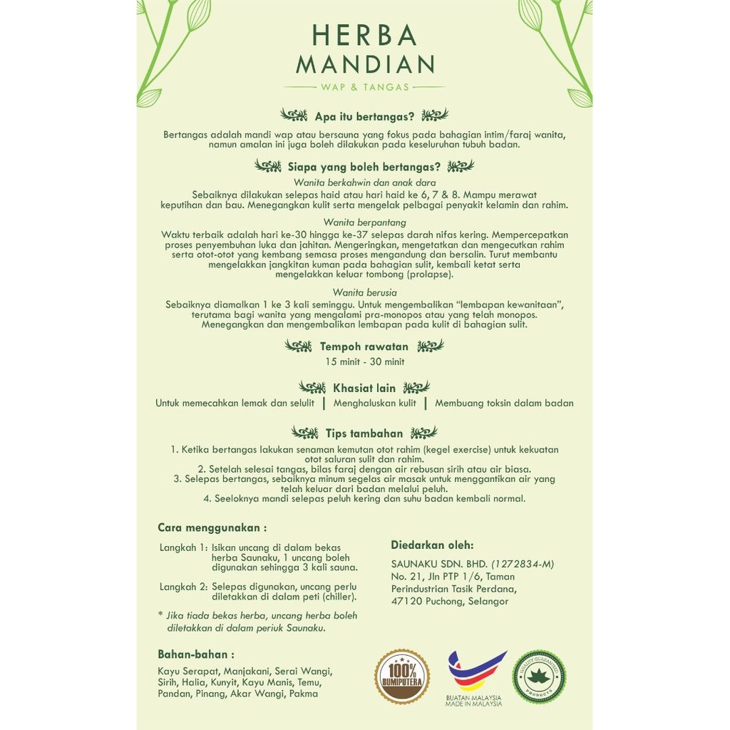 Herba Saunaku (Mandian Serai Wangi / Wap & Tangas)