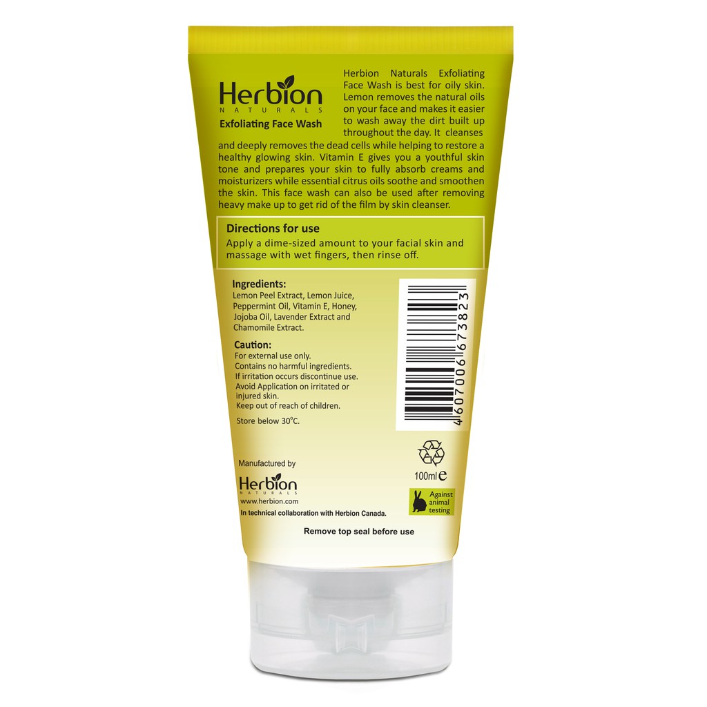 Herbion Naturals 2 in 1 Face Wash & Exfoliator with Lemon Peel Extracts & Vitamin E (100ml)