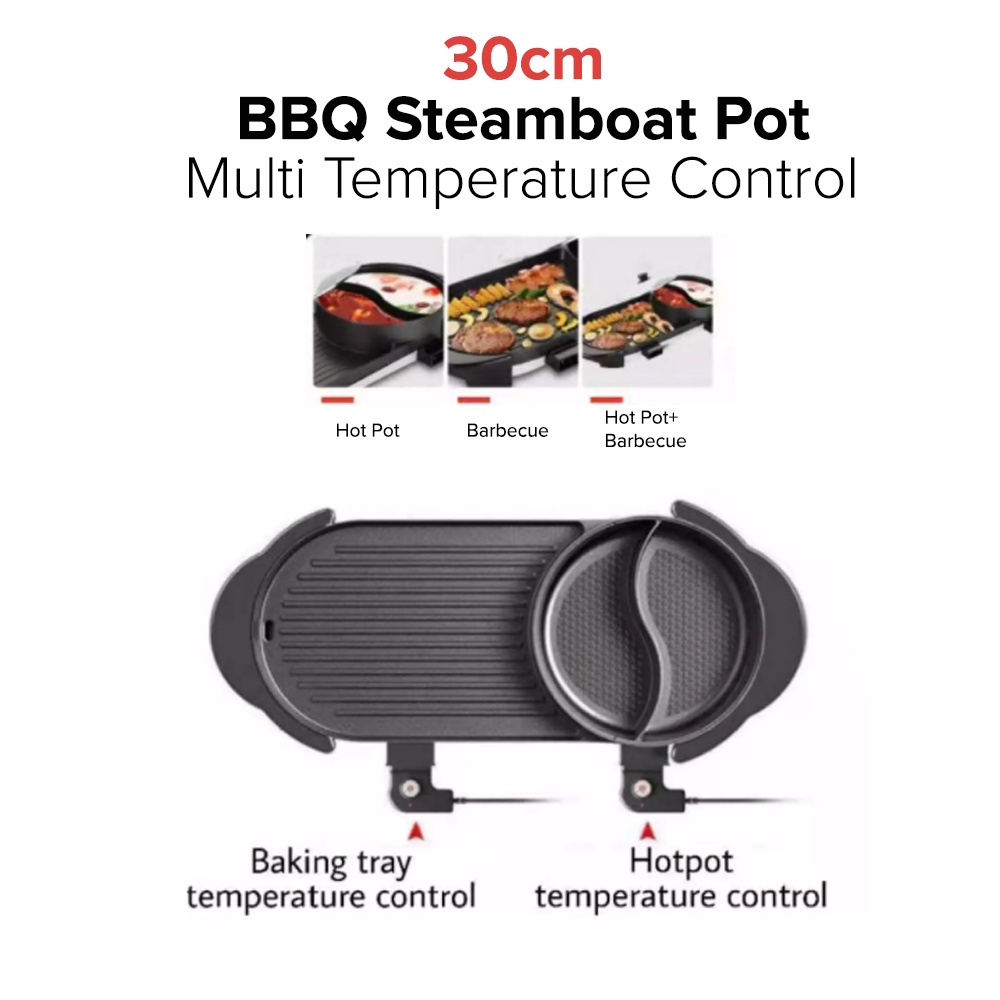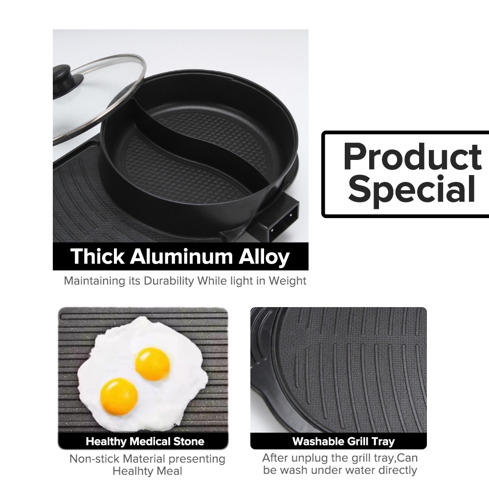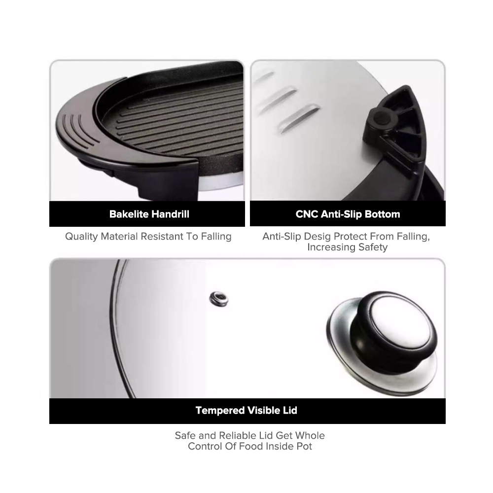 2025 Hericaine 2In1 Electric BBQ steamboat pot Grill Pan Dual Soup Hotpots Shabu Frying Pan Peruik Stimbot 55 / 71 cm