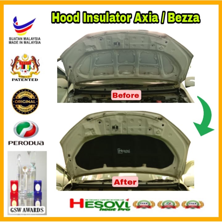 Hesovi Heatpro Car Bonnet/Hood Insulator for PERODUA AXIA GEN1 & PERODUA BEZZA Model (Full Cover)