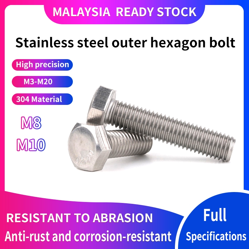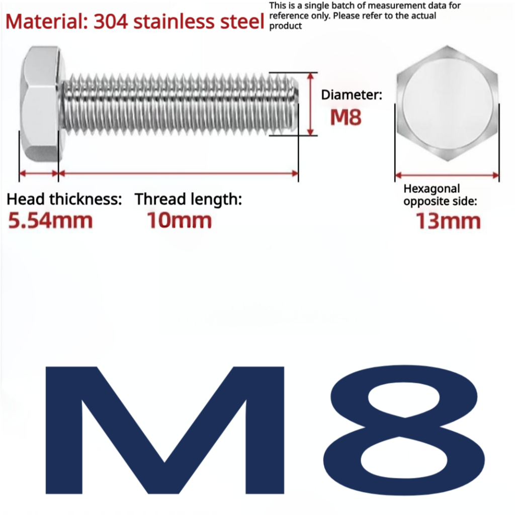 Hex Bolt M8 M10 304 Stainless Steel DIN 933 Screw Skru Spanner Wrench Hexagon Head DIY
