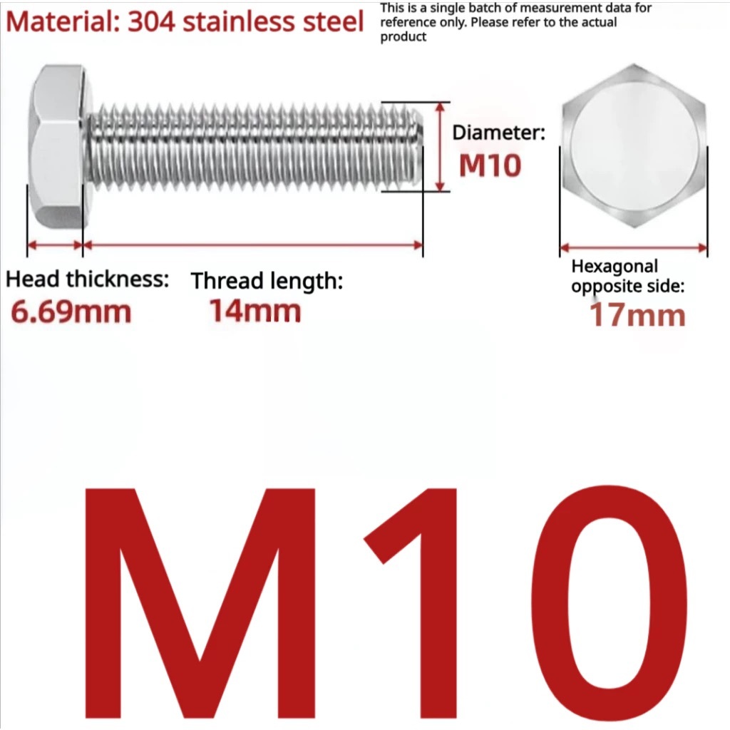 Hex Bolt M8 M10 304 Stainless Steel DIN 933 Screw Skru Spanner Wrench Hexagon Head DIY