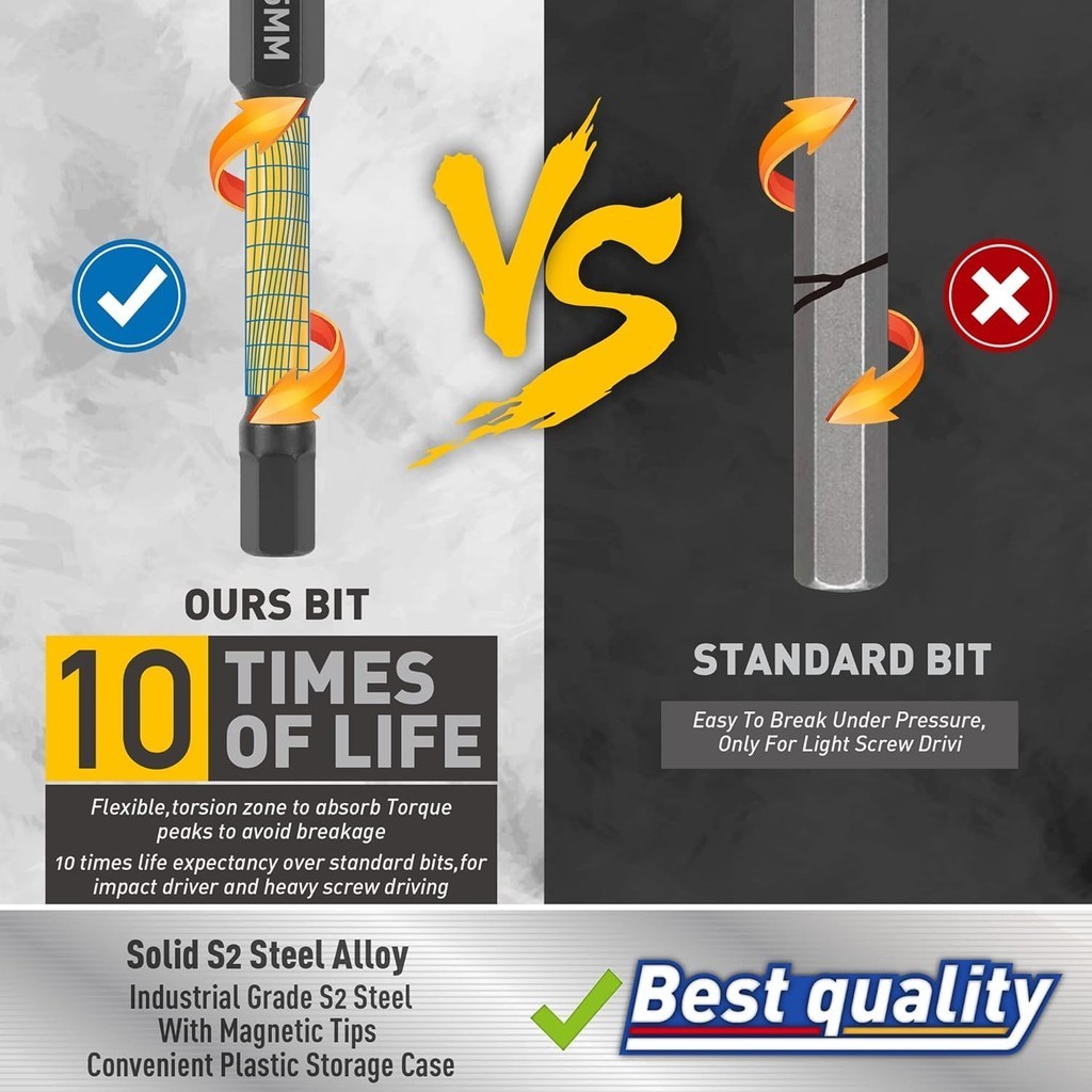 Hex Head Allen Wrench Drill Bit Set Metric and SAE Allen Bits Set S2 Hexagon Screwdriver Bit