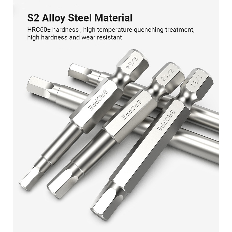 Hex Head SAE Socket BIts 10Pcs in Bulk, Allen Wrench Screwdriver Bits 5/64 - 5/16", S2 Steel Hex Socket Key 1/4" Hex Shank Quick Release Magnetic Screw Driver Bit Set 50/100mm