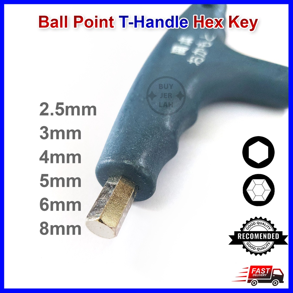 Hex Key Ball Point T-Handle Allen Key 2.5mm, 3mm, 4mm, 5mm, 6mm, 8mm