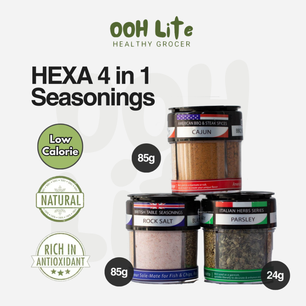Hexa 4 in 1 Seasonings (Italian Herbs/American BBQ/British Table Seasoning) Low Calorie, Natural, Weight Loss