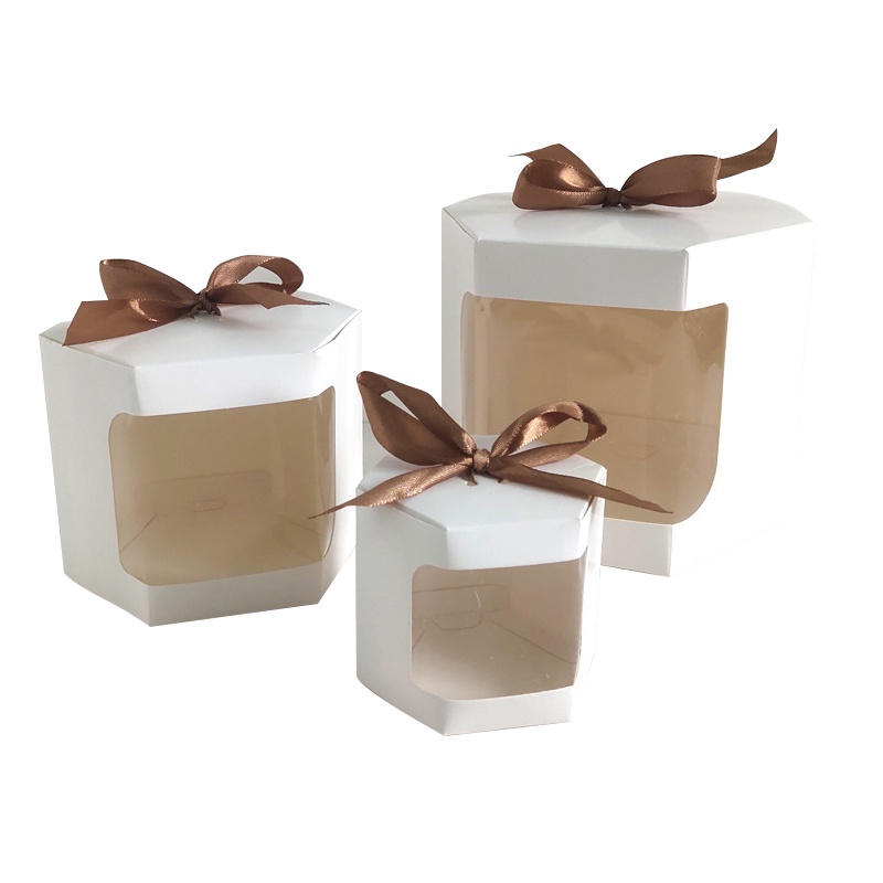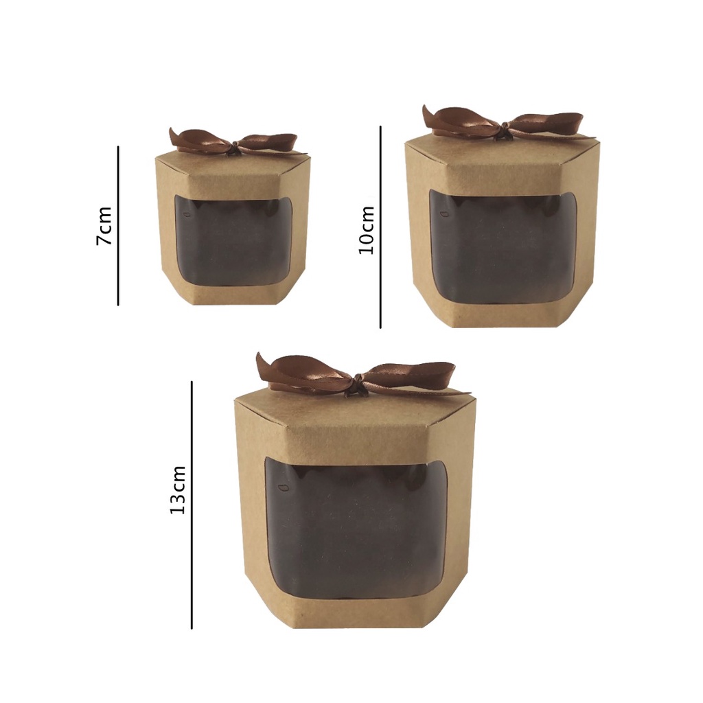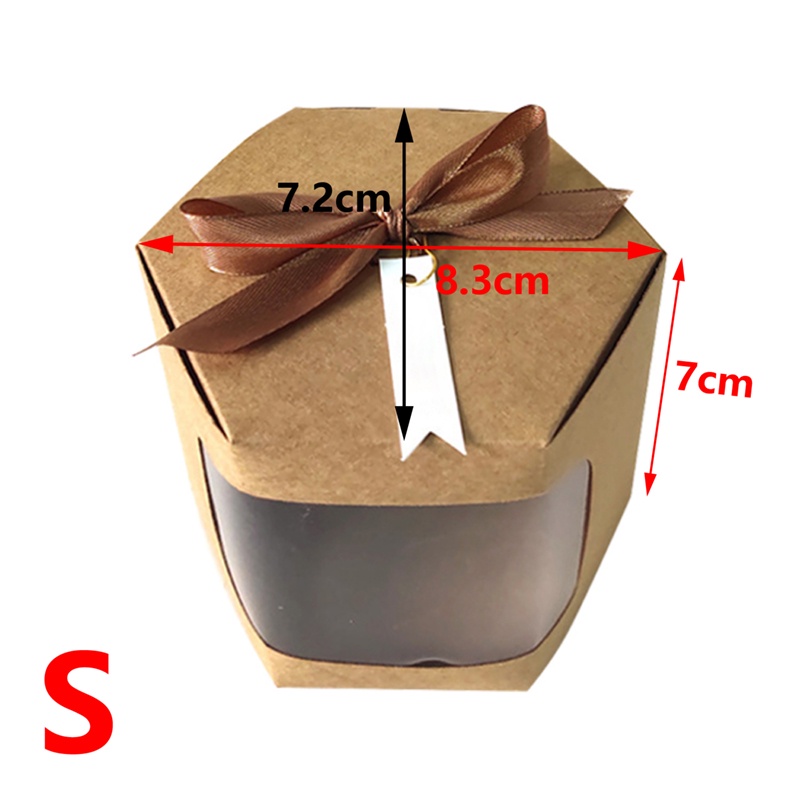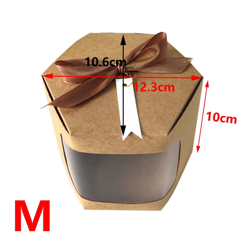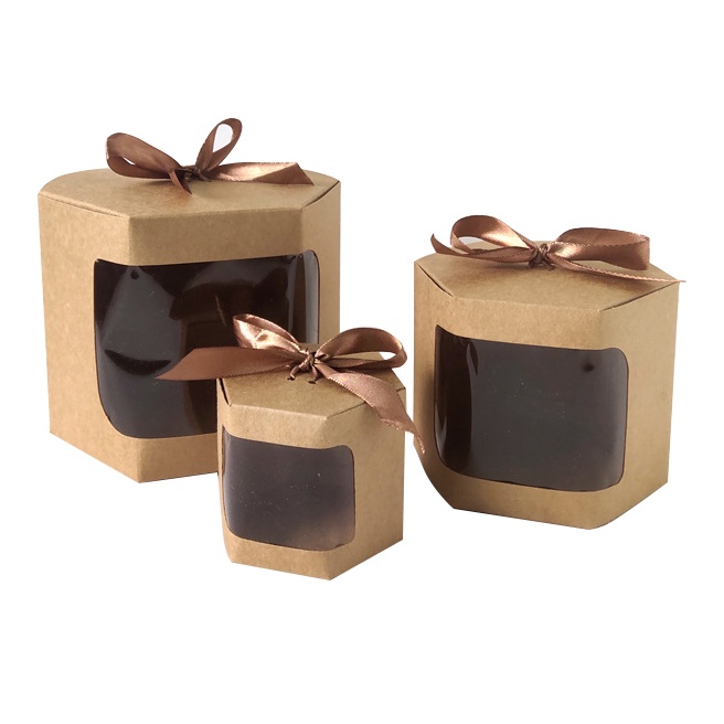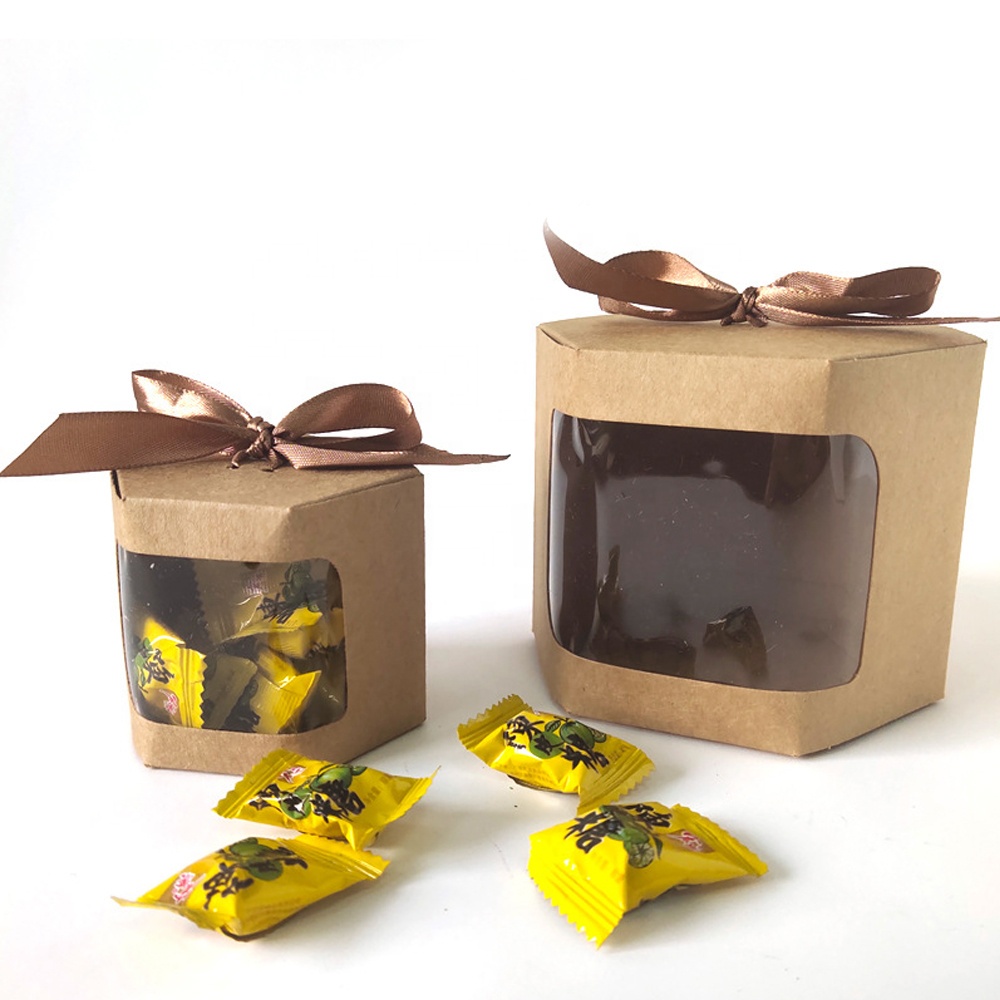 Hexagon Kraft Box with Window / Kraft Paper Creative Hexagonal / Candy Gift Box with Transparent Window
