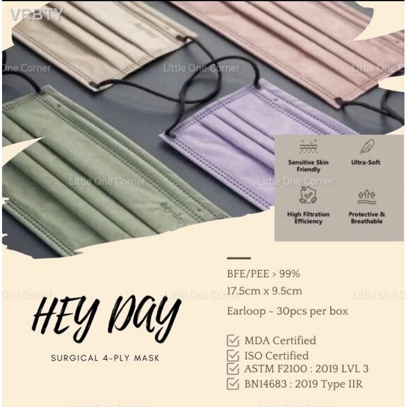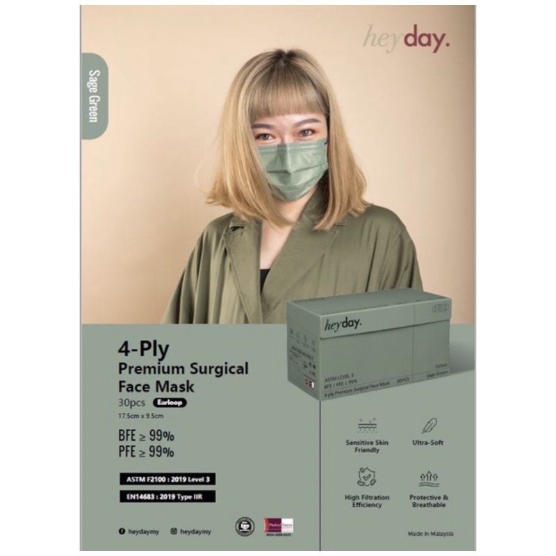 Heyday 4Ply Premium Surgical Face Mask/ Heyday/ Heyday Mask/ 10pcs 30pcs Mix Colour Premium Mask