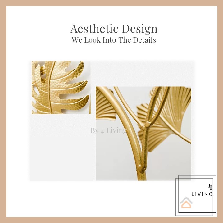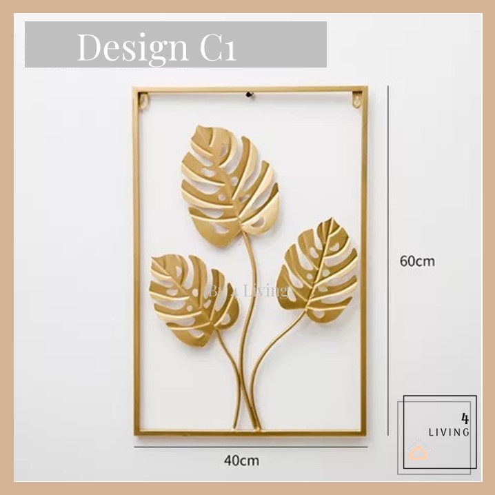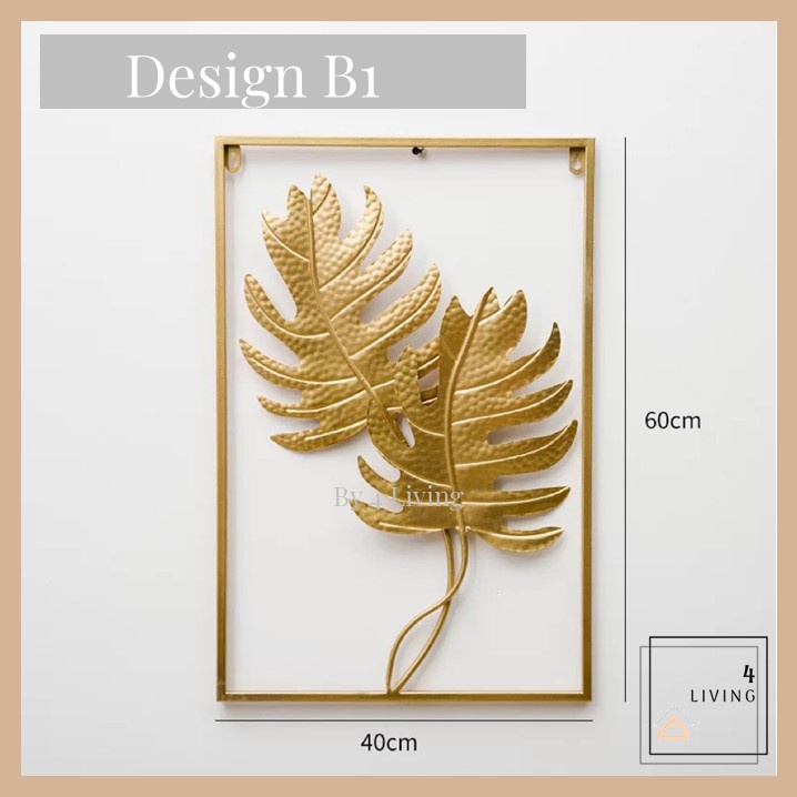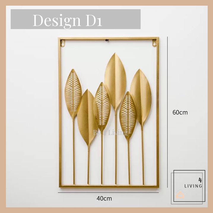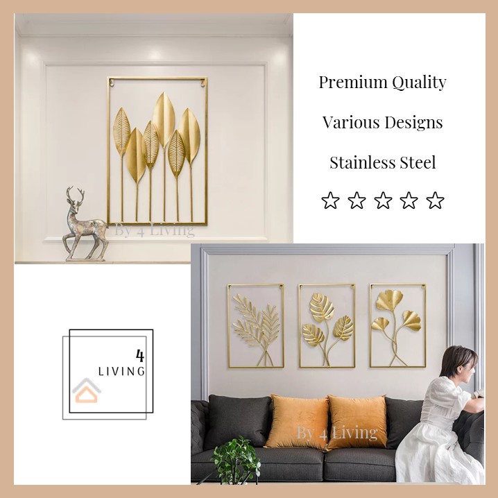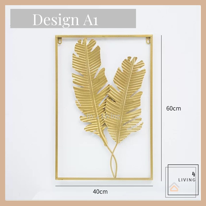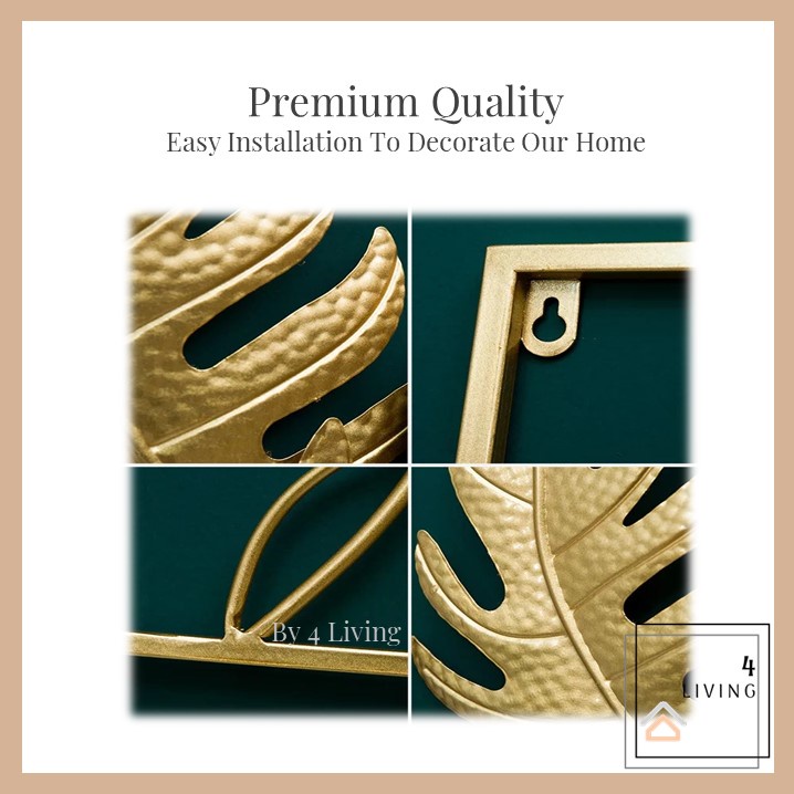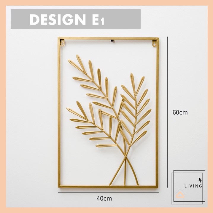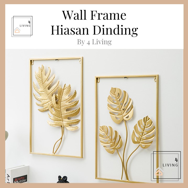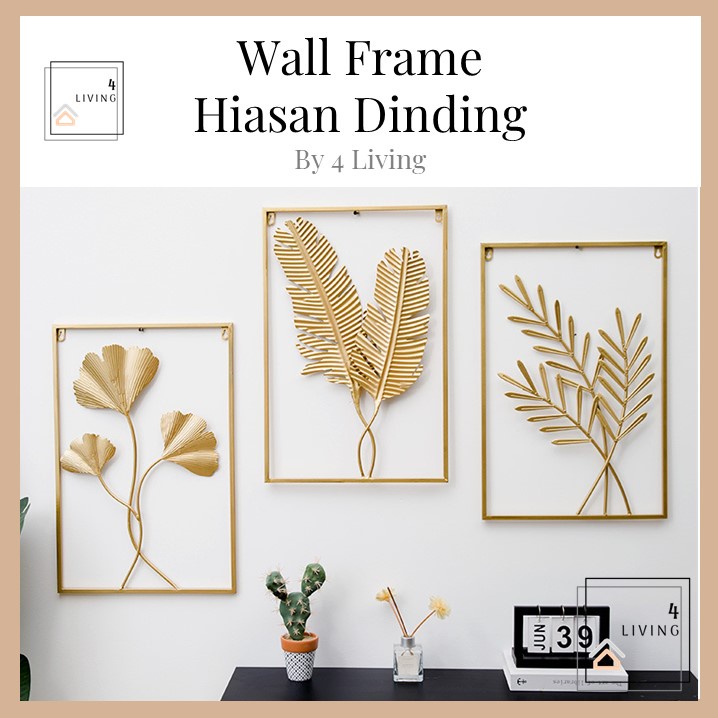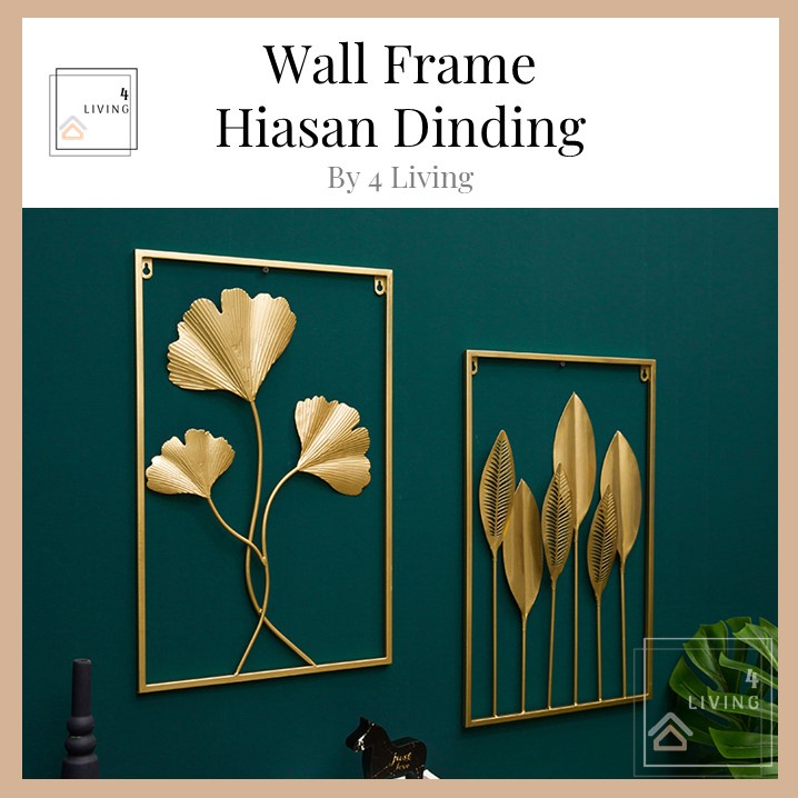 Hiasan Dinding Berbingkai Logam Daun Emas Hiasan Dinding Ruang Tamu Metal Golden Wall Frame Deco Hiasan Rumah Decor