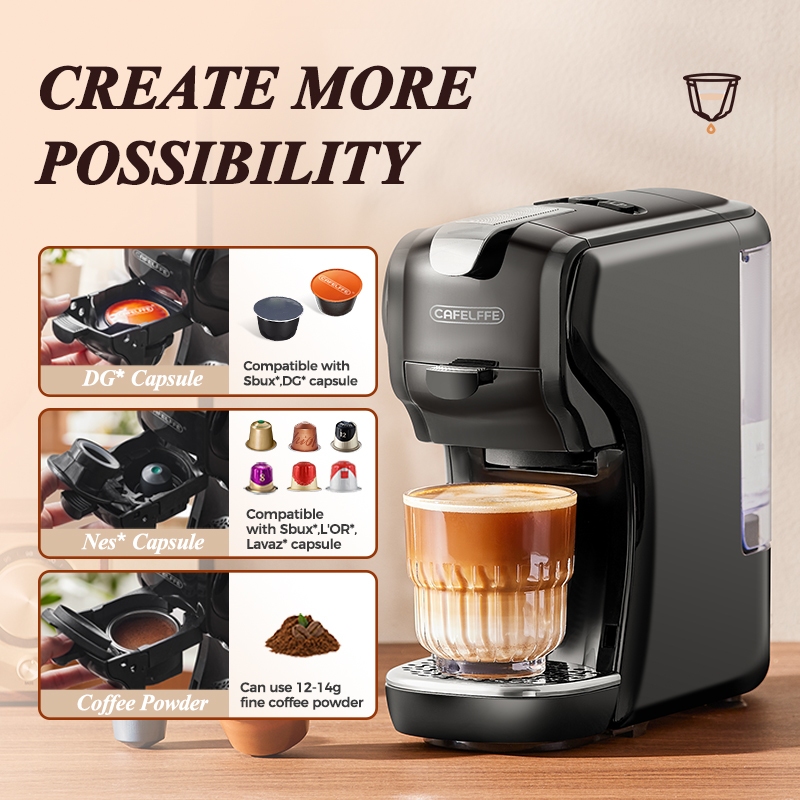 Cafelffe 3 In 1 Coffee Machine 19Bar Automatic Coffee Maker Fit Nespresso & Dolce Gusto & Ground Powder