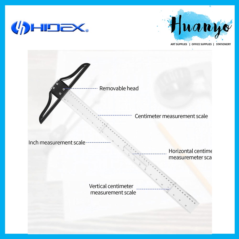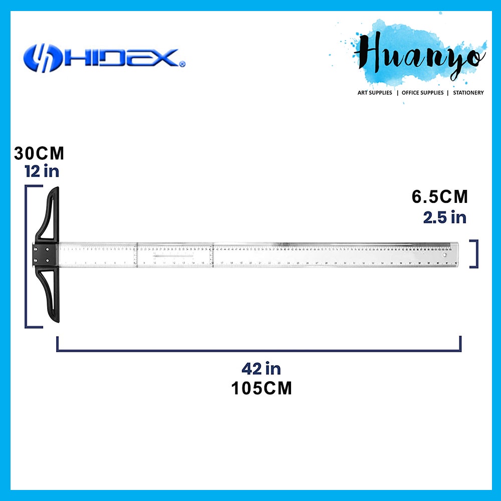 Hidex Clear Plastic Acrylic T Square Ruler With Detachable Head(105cm,42 inch - CM / Inch Reading)