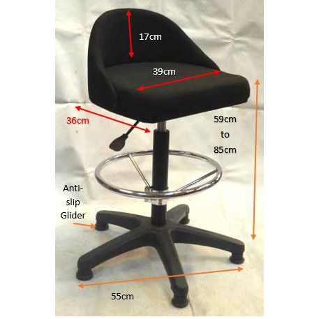 High Bar stool with backrest-adjustable height from 59 cm to 85 cm, 5 prong base with glider