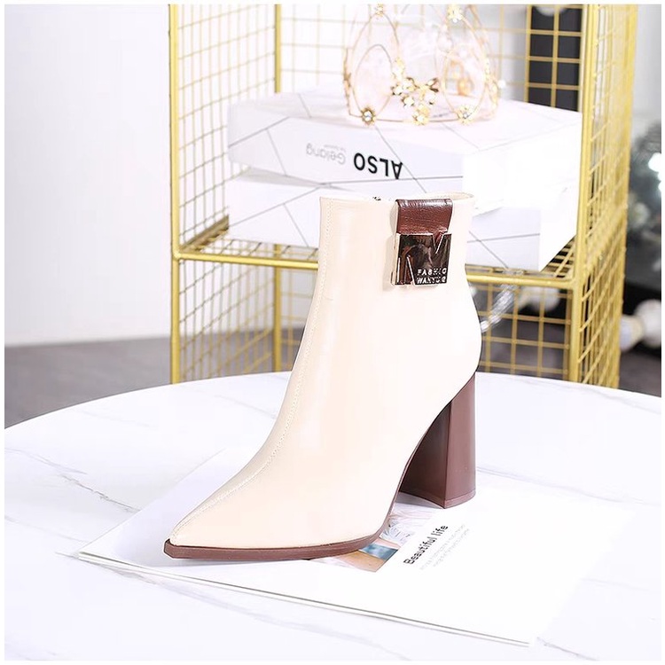 High Heel Ankle Boots Pointed Toe Thick Heel Plus Size Shoes