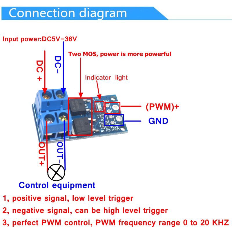 High Power 15A 400W MOS FET Trigger Switch Drive Module PWM Regulator Electronic Switch Control Panel DC 5V-36V