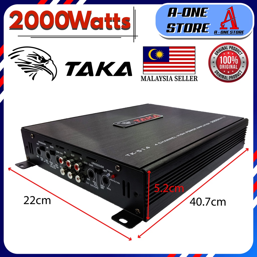 High Power Car Amplifier 2000Watts 4 - Channel TAKA Car Power Amp TK-514 Suitable for car speaker and woofer