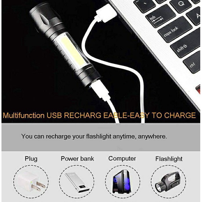 High Power Rechargeable Waterproof Zoomable LED Torch Light XPE+COB USB Charge Flashlight.(Ready Stock)