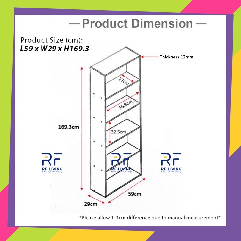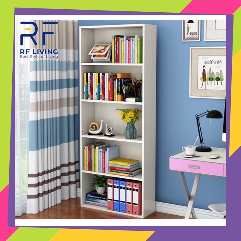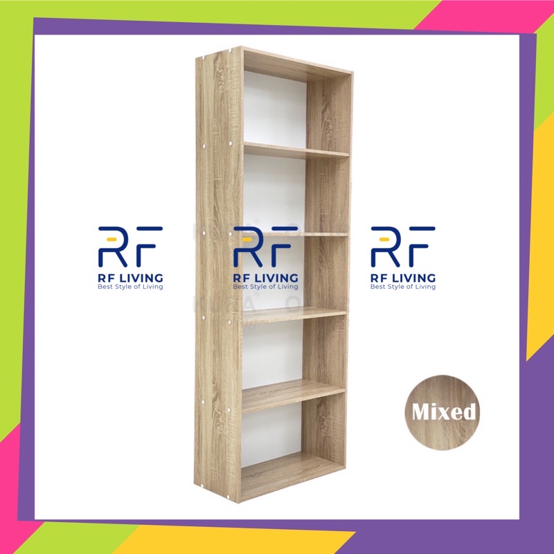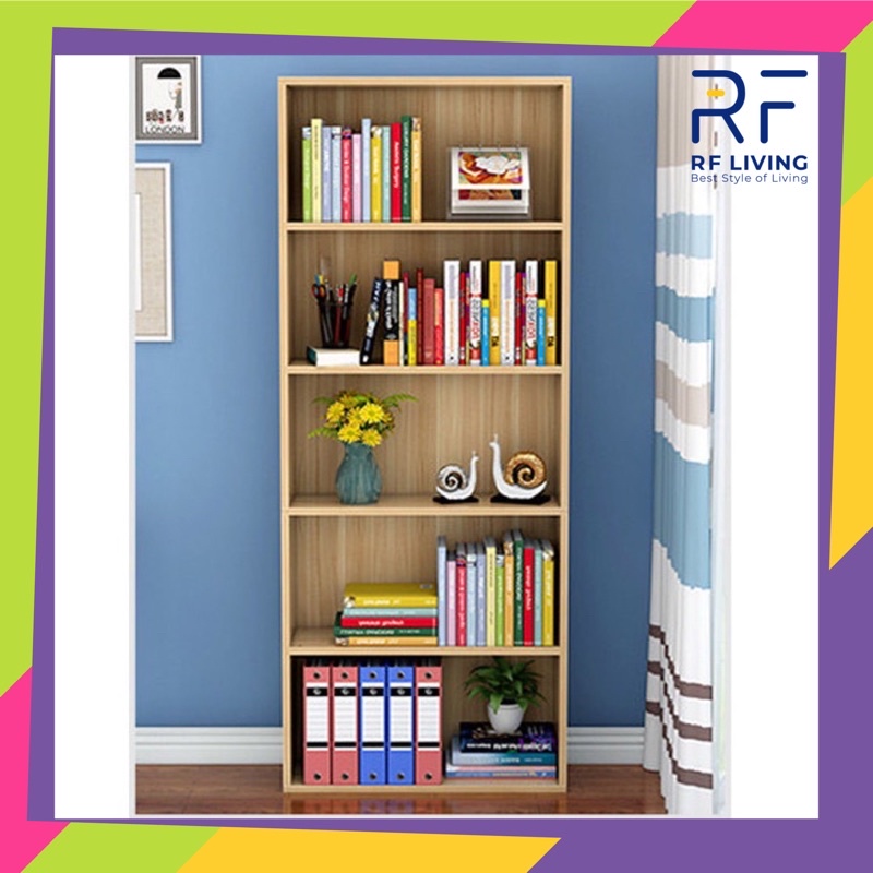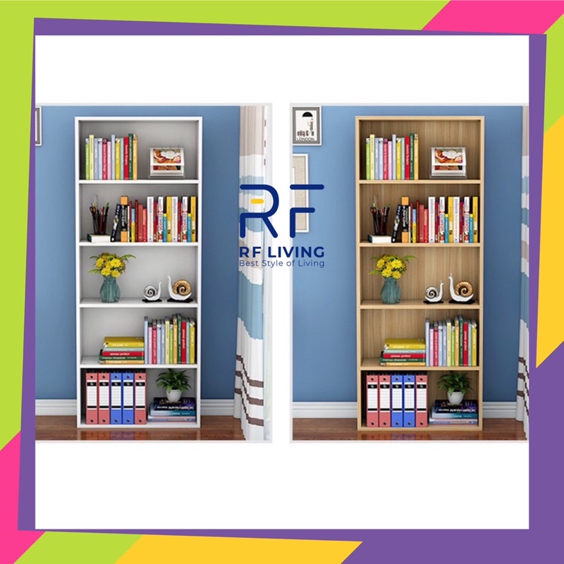 RF Living High Quality 5 Tier Wooden Bookshelf Space Saving Storage Shelf Book Case Rak Buku 5 Tingkat (Buatan Malaysia)