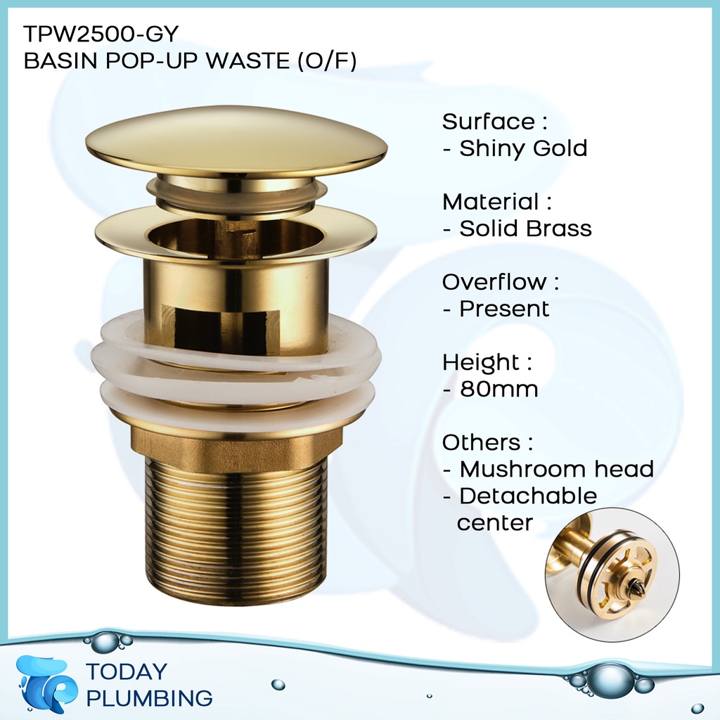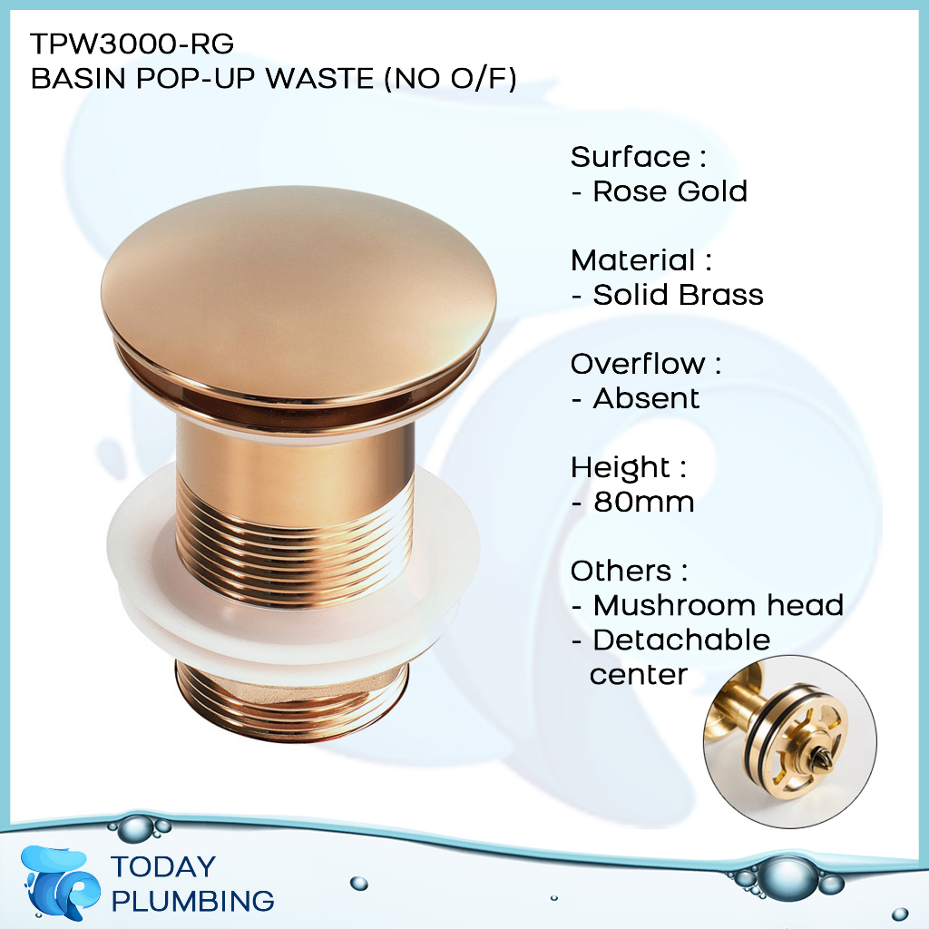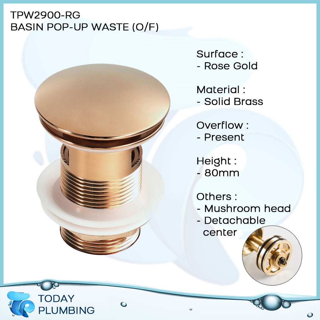 High Quality Mushroom Basin Pop Up Waste with Removable Centrepiece Rose Gold Black Chrome Satin