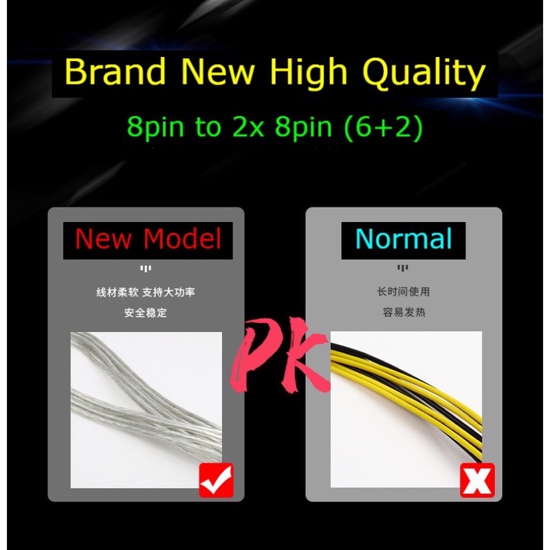 High Quality Pcie 8Pin To Dual 8 (6+2)Pin Power Cable Graphic Card Cable / 8 pin splitter / 6pin to Dual