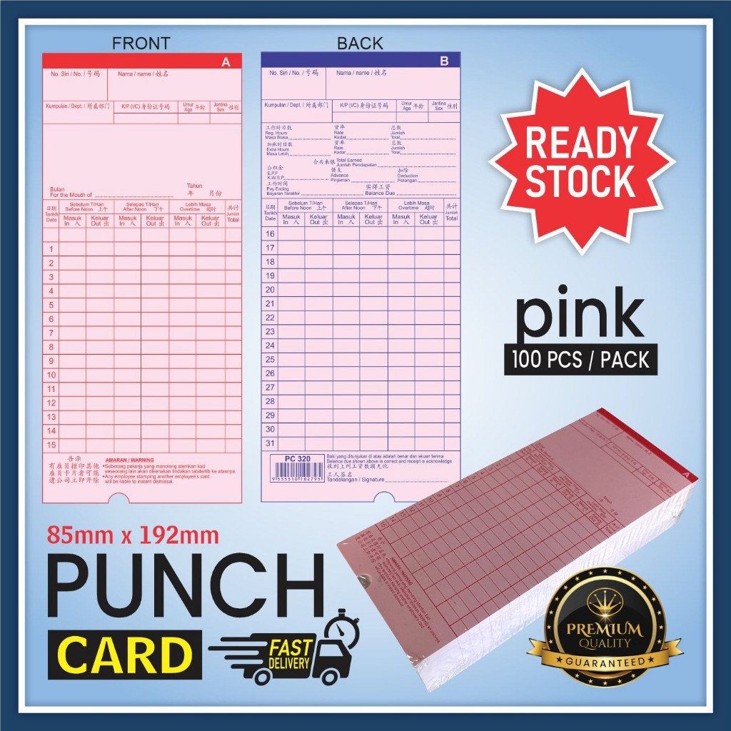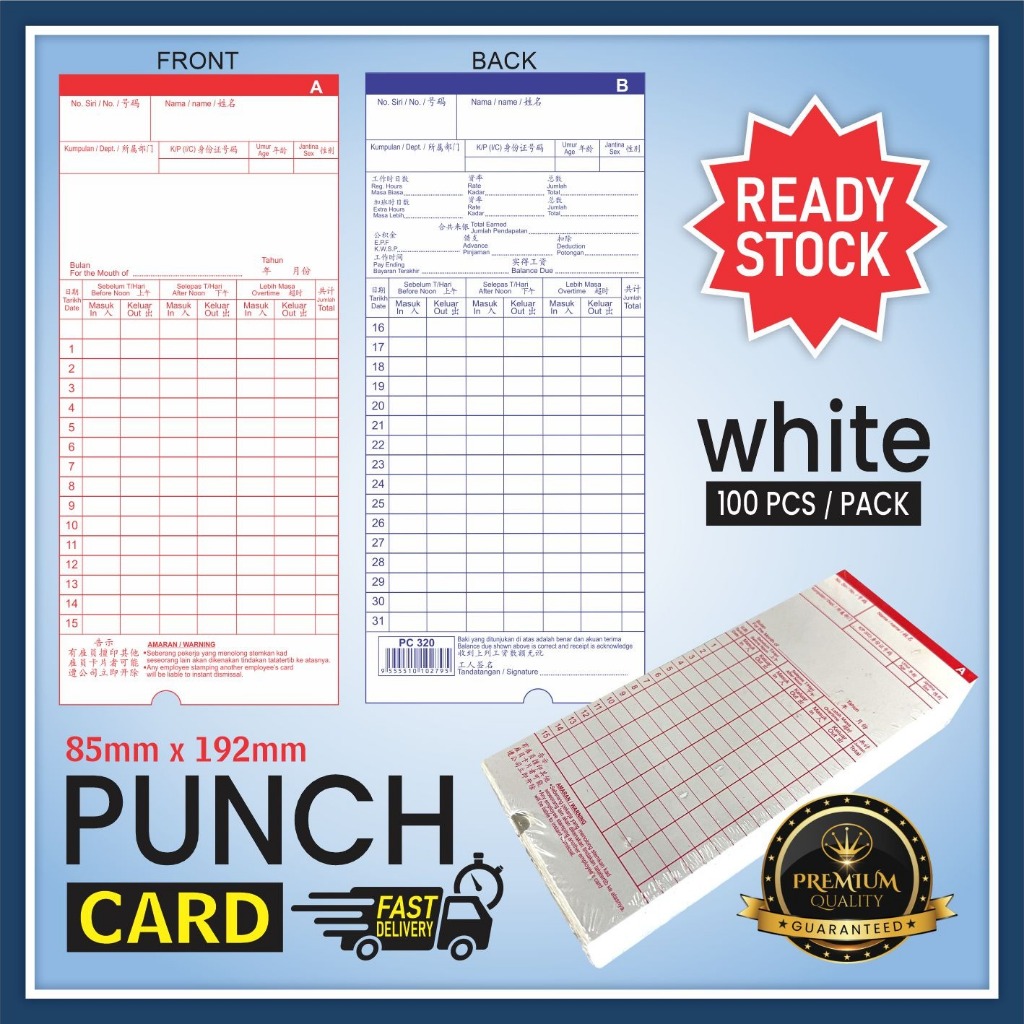 High Quality Punch Card | 100pcs/pack | Attendance Time Recorder Machine Time Clock Punch Card
