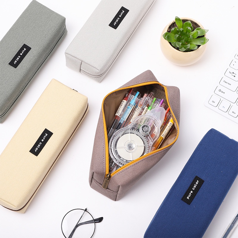 Berkualiti Tinggi Sederhana Mesh Pejabat Pelajar Zipper Kotak Pensel Kanvas Perlengkapan Sekolah Pencil Box Cases Canvas