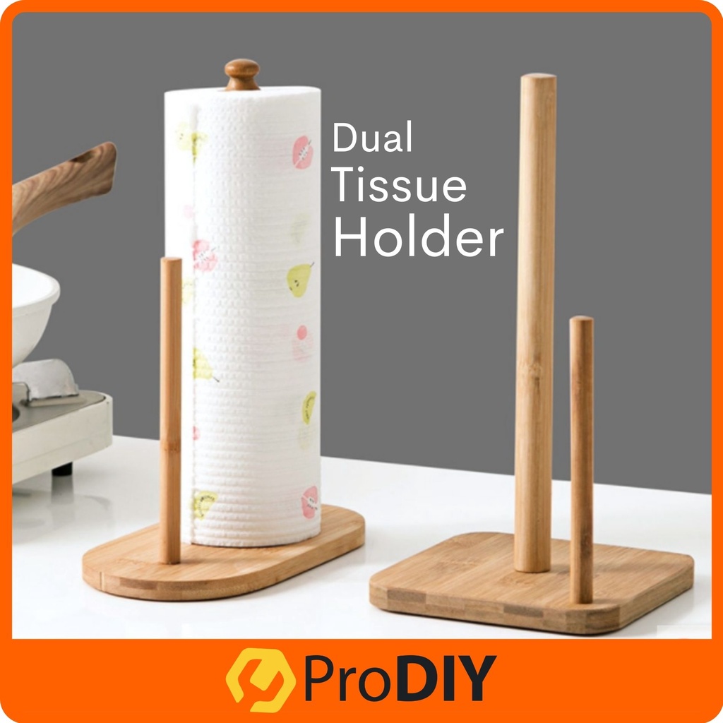 High Quality Vertical Wooden Dual Tissue Holder Square Oval Base Roll Paper Tissue Pemegang Tisu