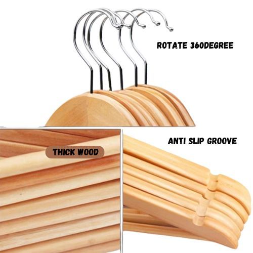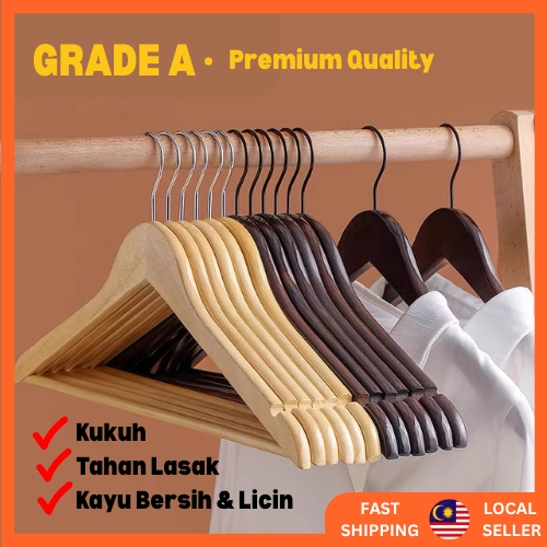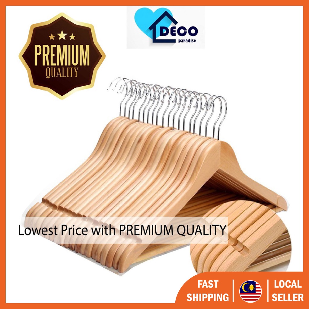 High Quality Wooden Hanger Clothes Hanger Wood Hanger Solid Hanger Penyangkut Baju Hanger Kayu (Thicker Version) 1 pcs