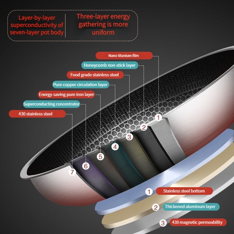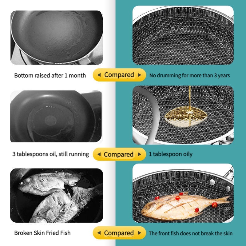 High-end 316 stainless steel non-stick pan plated uncoated 24cm/30cm honeycomb pan for all grills, for a healthy breakfast. Composite bottom