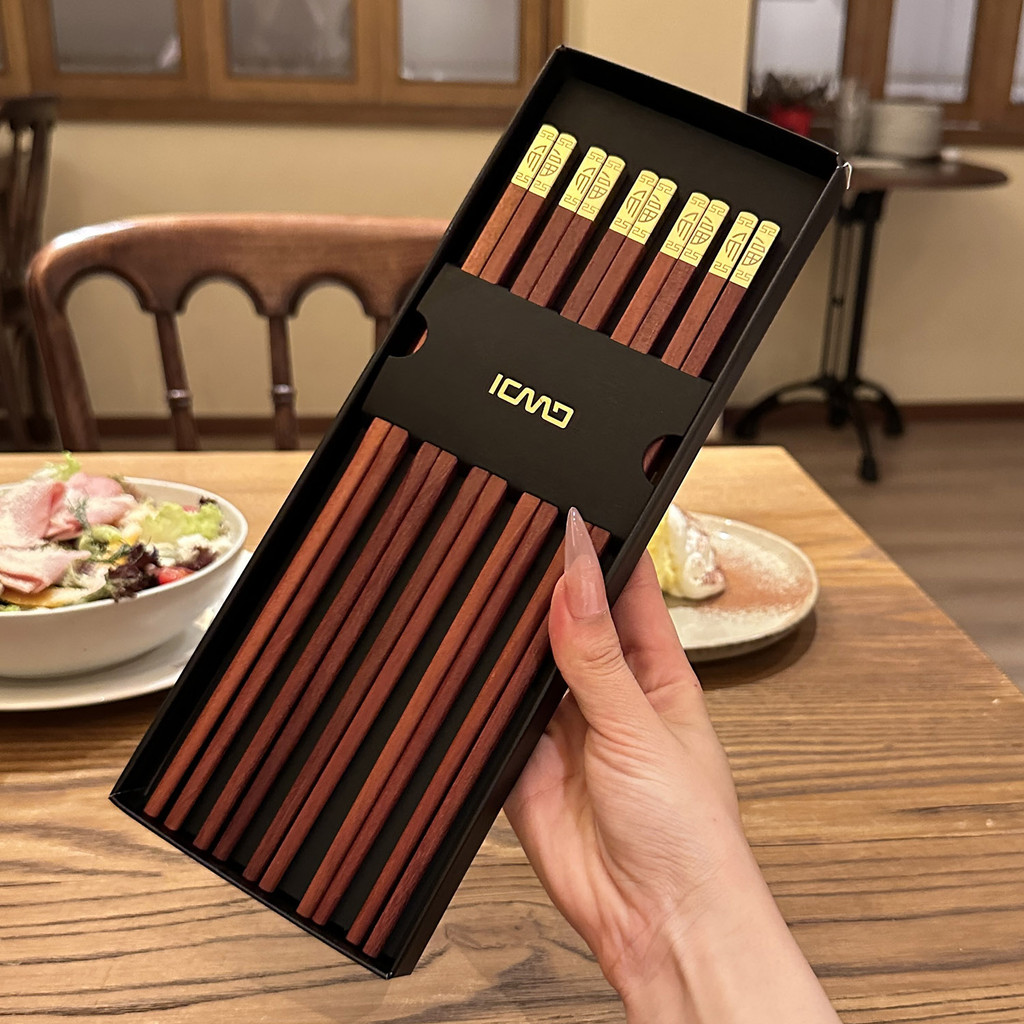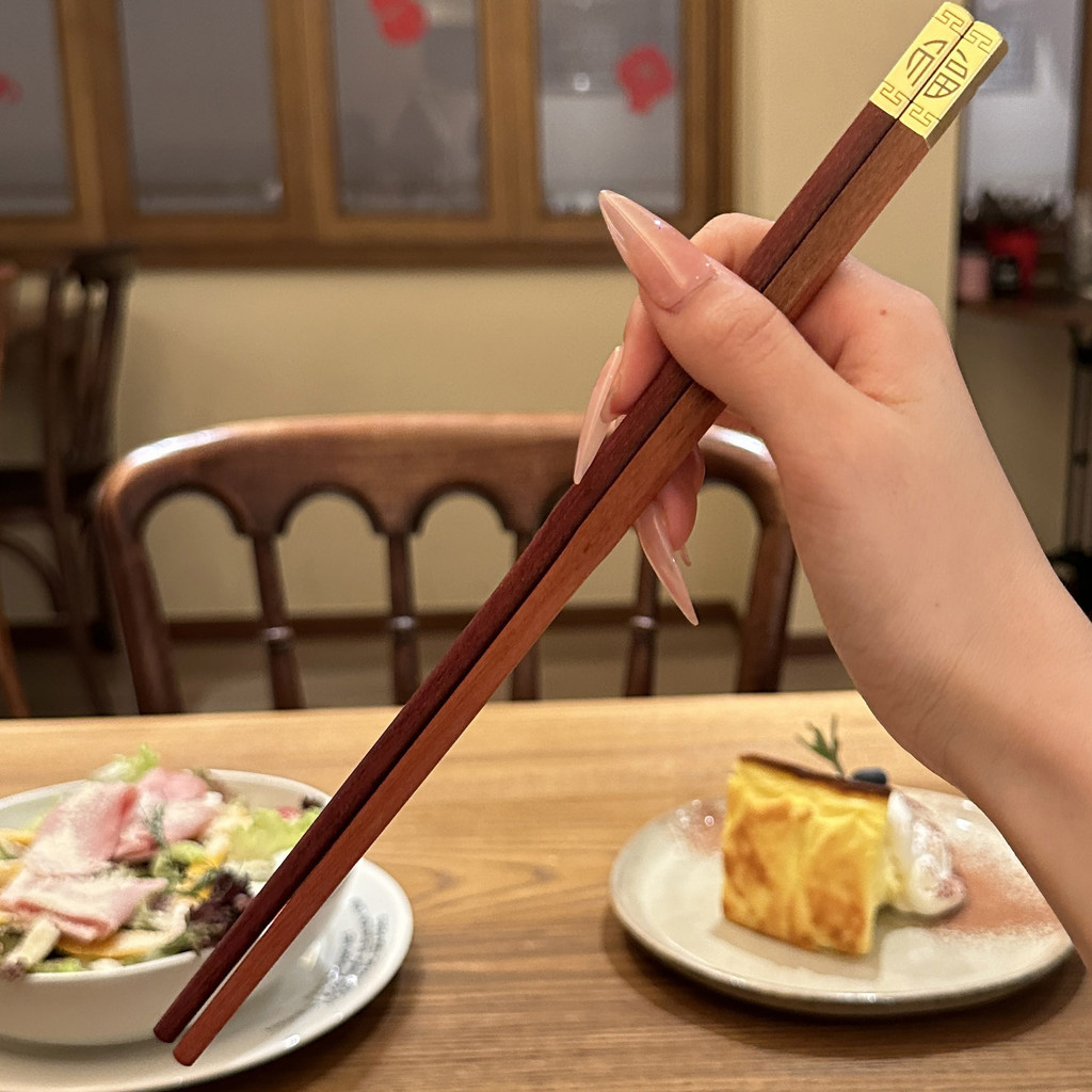 High end Rosewood chopsticks gold headed solid wood chopsticks household anti slip lucky chopsticks