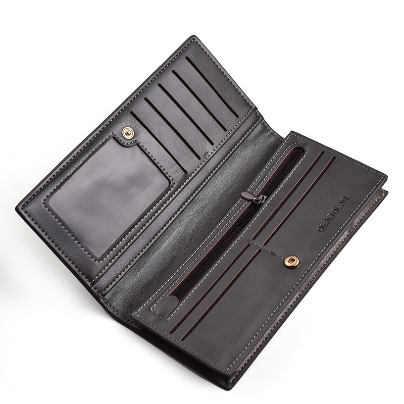 High-end Soft Leather Men Wallet Bifold Snap Closure Long Wallet for Men Multi-card Wallet Men Dompet Lelaki