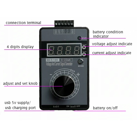 High-precision 0-4-20mA signal injector/simulator and +/- voltage( 0-10V5V) generator(internal battery)