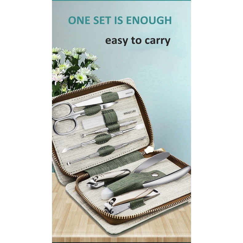 High quality Manicure Set 9 in 1 Professional Practical Kit With leather case Stainless Steel Nail Clippers Personal Care Tool