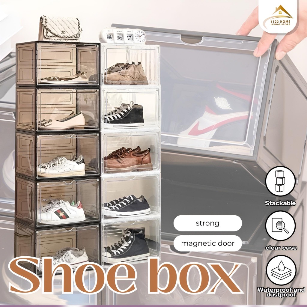 High quality transparent large size stackable shoe box PP material storage display shoe cabinet