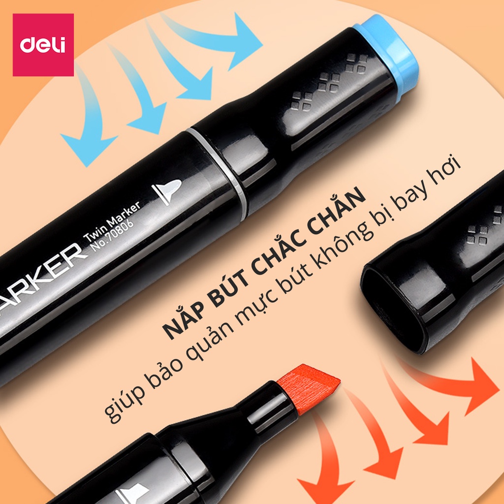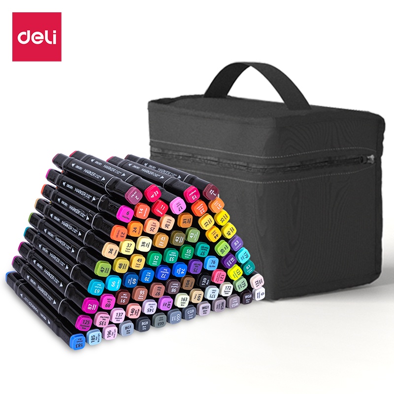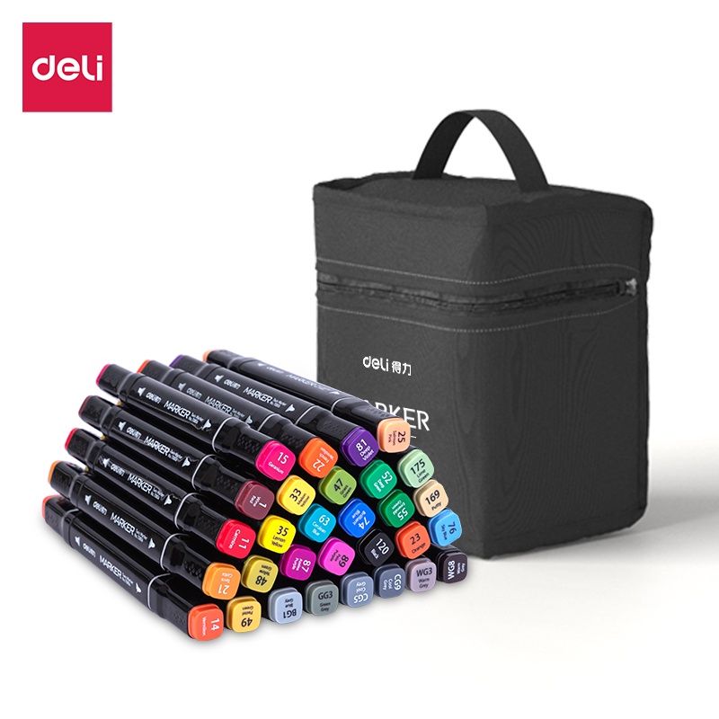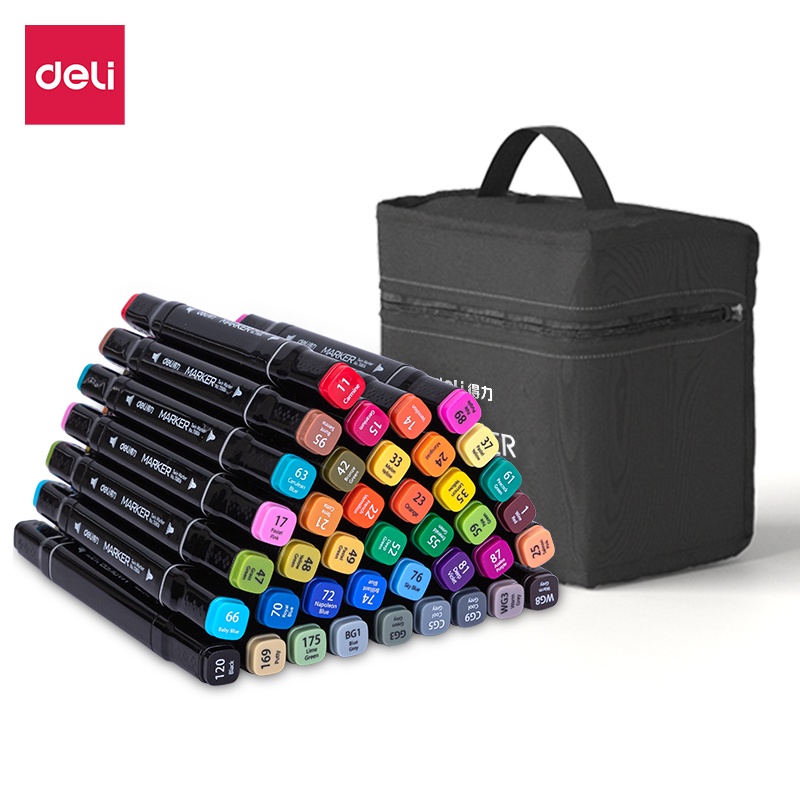 Deli Professional 2-Headed Marker Pen with Cloth Bag for Drawing, Painting, Writing Calligraphy 30/40/60/80 Dark Colors