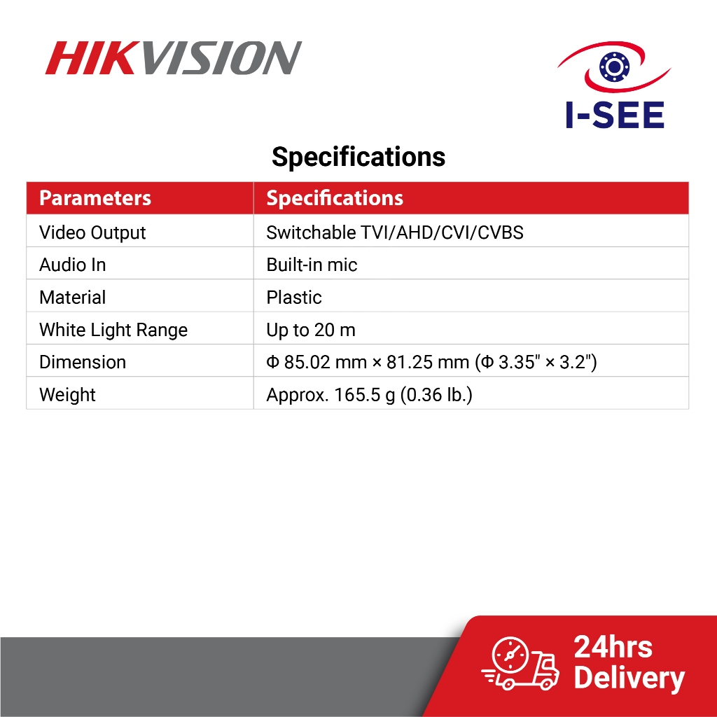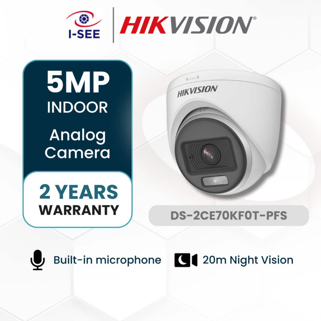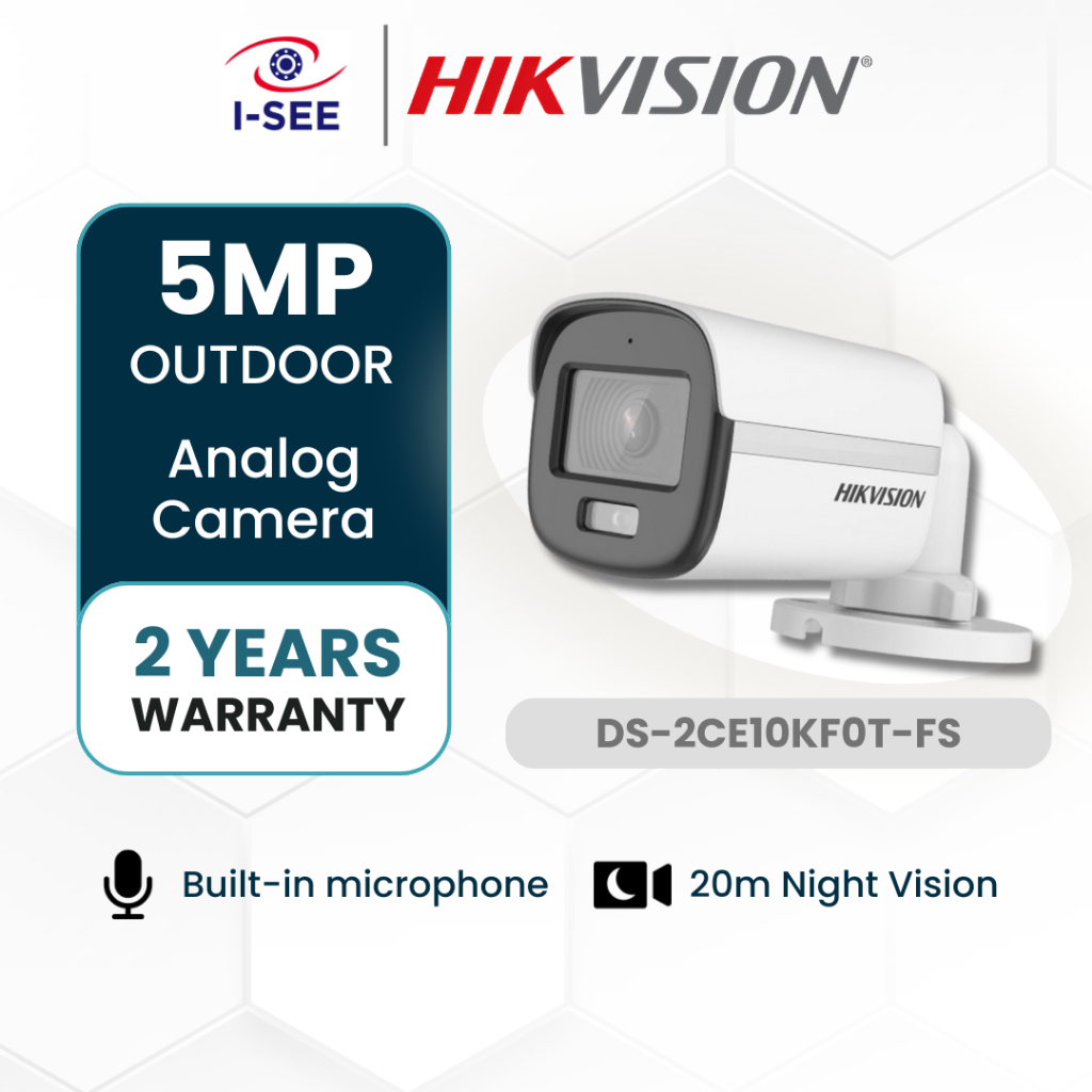Hikvision 3k 5mp ColorVu Fixed Bullet / Turret Camera DS-2CE10KF0T-FS / DS-2CE70KF0T-PFS Analog Built-in Mic Audio CCTV