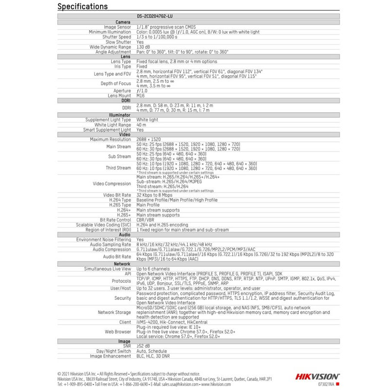 Hikvision DS-2CD2047G2-LU 4MP ColorVu Fixed Bullet Network Audio Camera