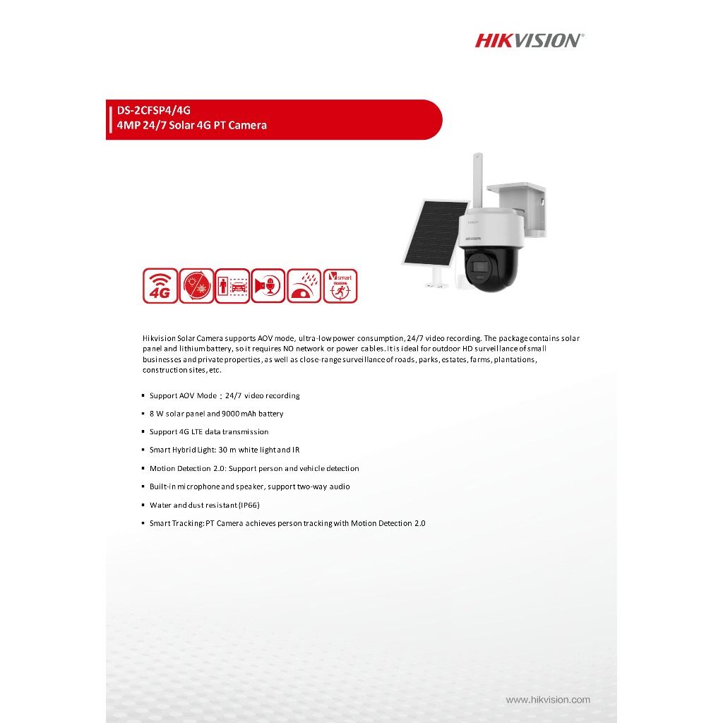 Hikvision DS-2CFSP4/4G 4MP 24/7 Solar 4G PT Camera - Hikvision 4G Solar PT Camera - 4G CCTV Camera