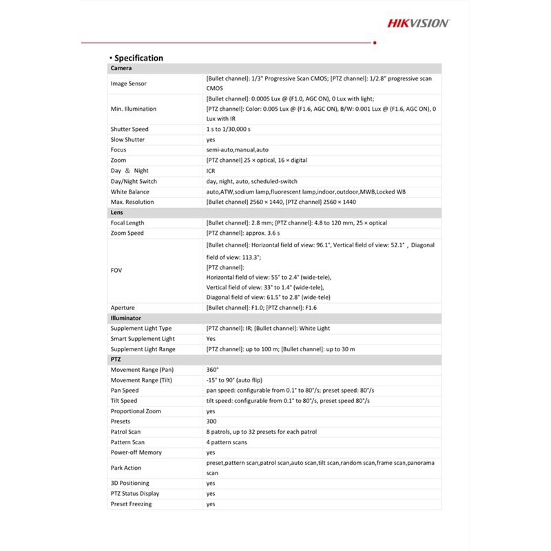 Hikvision DS-2SE4C425MWG-E(14F0) TandemVu 4MP 4 Megapixel IP Network CCTV PTZ Camera 25X Zoom 100m IR ColorVu POE